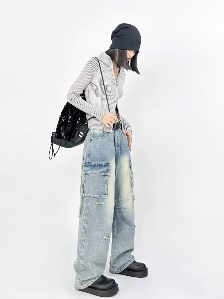 남성과 여성을위한 바지 폭발 2024 넓은 다리 작업복은 청바지를 찢었습니다.스토어 가기