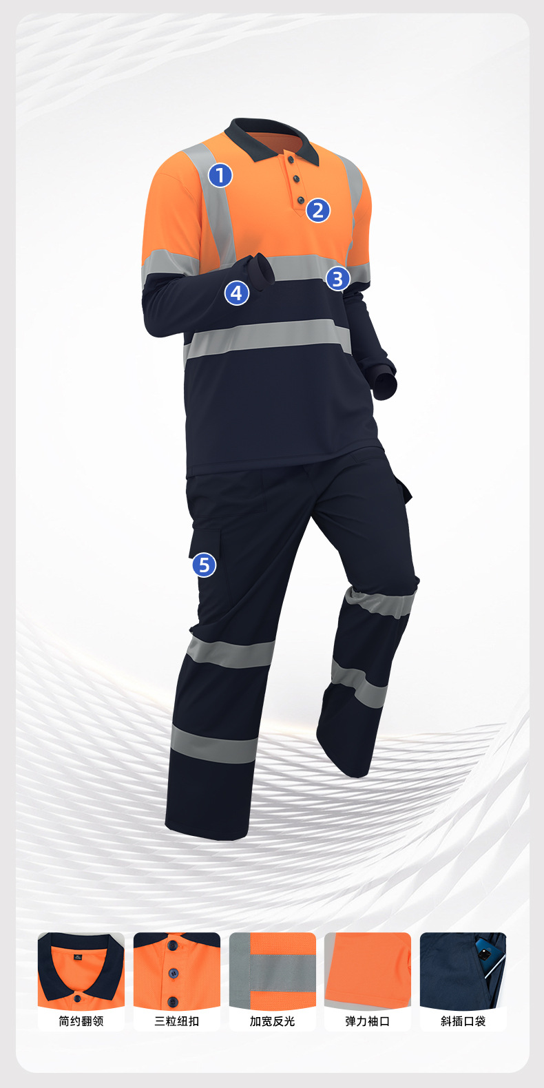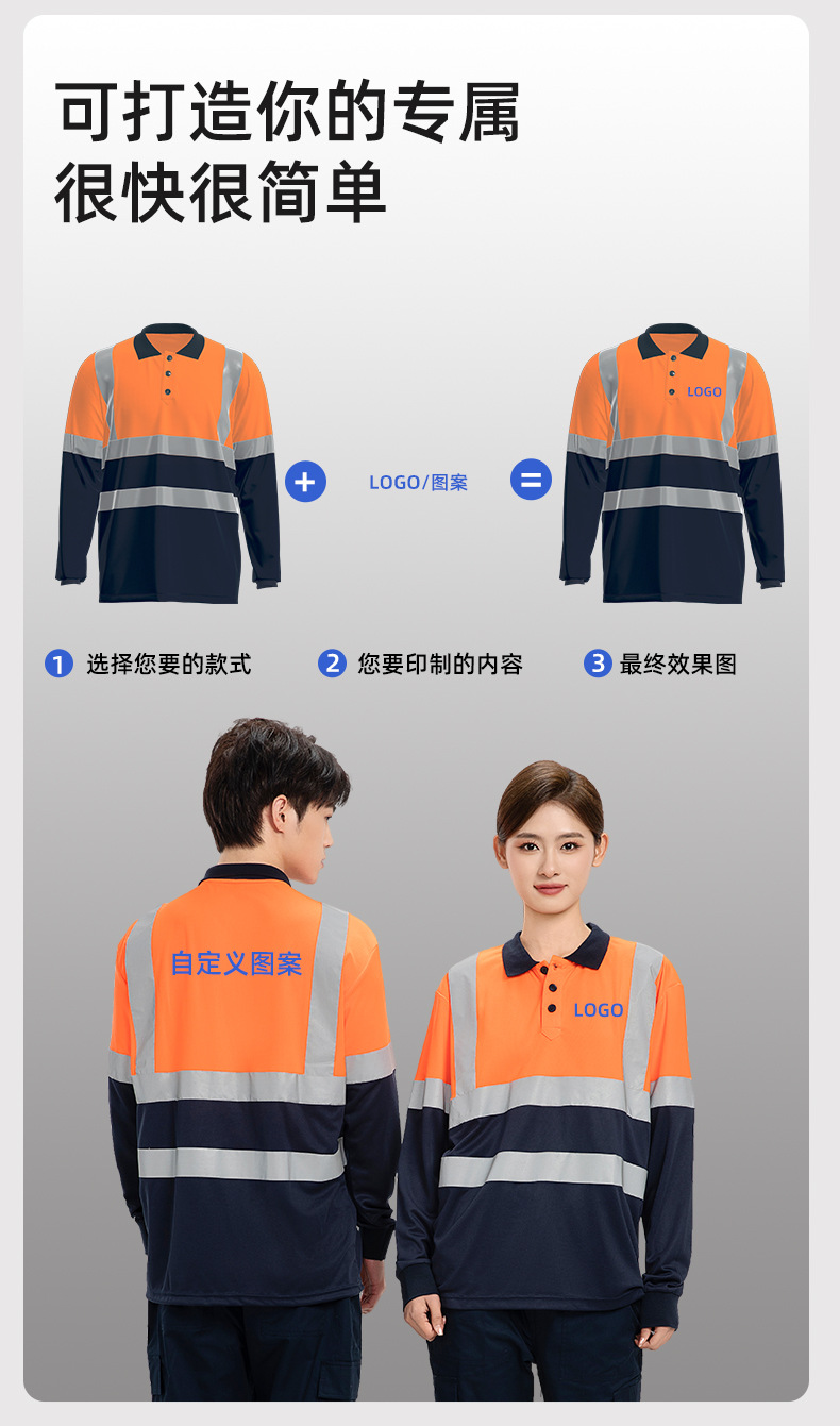 국경 간 여름 속건성 긴팔 폴로 셔츠 얇은 통기성 반사 스트립 셔츠 작업장 기계 수리 작업복 사용자 정의