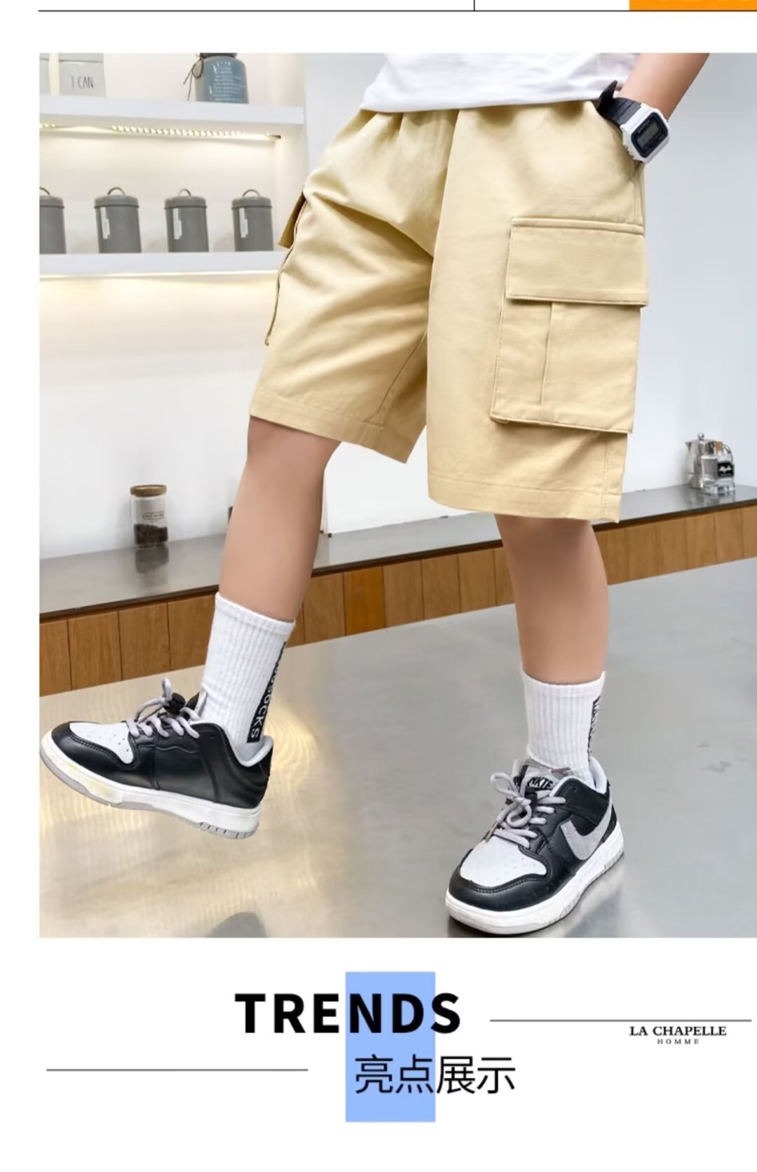 소년 반바지 2024 새로운 여름 어린이 여름 원피스 큰 소년 캐주얼 바지 얇은 유행 바지스토어 가기