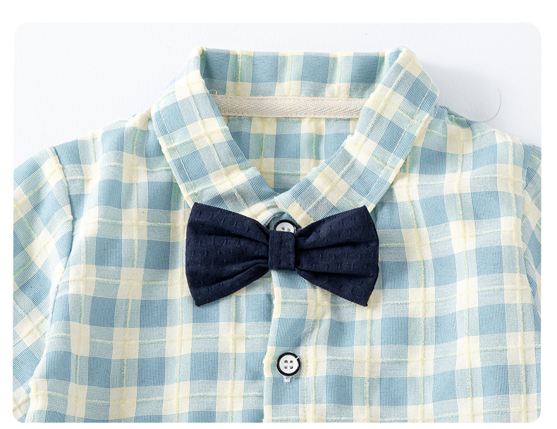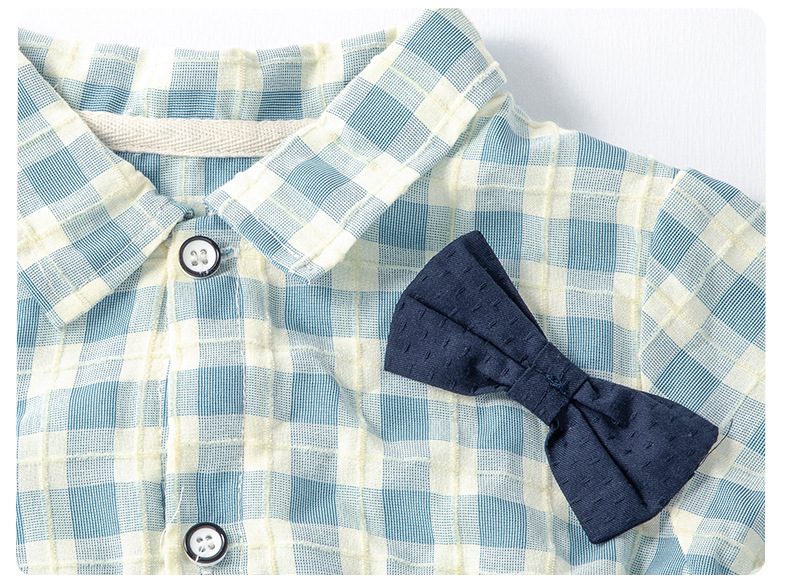 어린이 세트 여름 격자 무늬 셔츠 반팔 멜빵 한국 소년 세트 재고 도매 신사 원피스