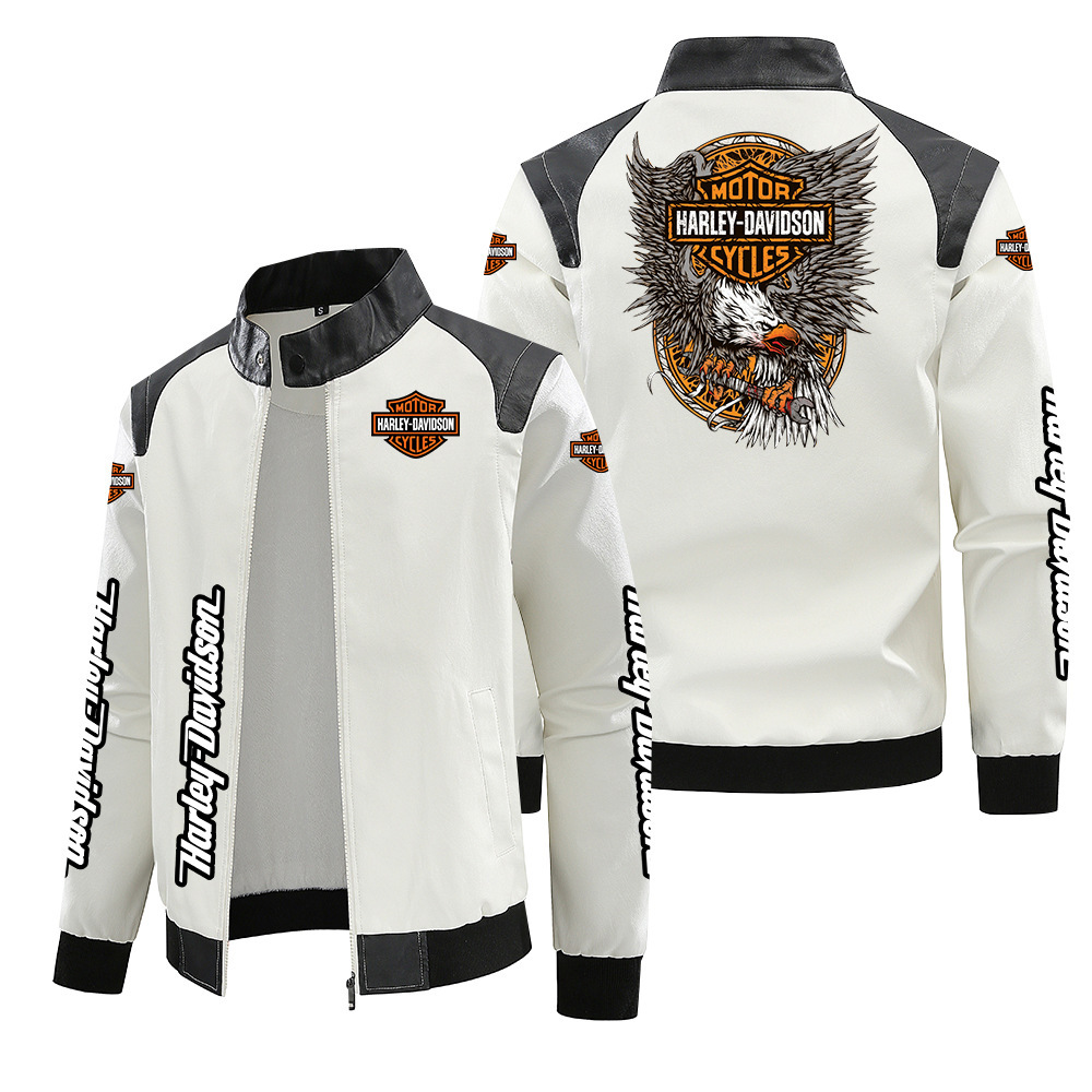 [유럽 코드 기모] 국경 간 헤일리 기관차 표준 가죽 플러스 사이즈 가을 및 겨울 재킷 pu 고급 남성 클립 인쇄