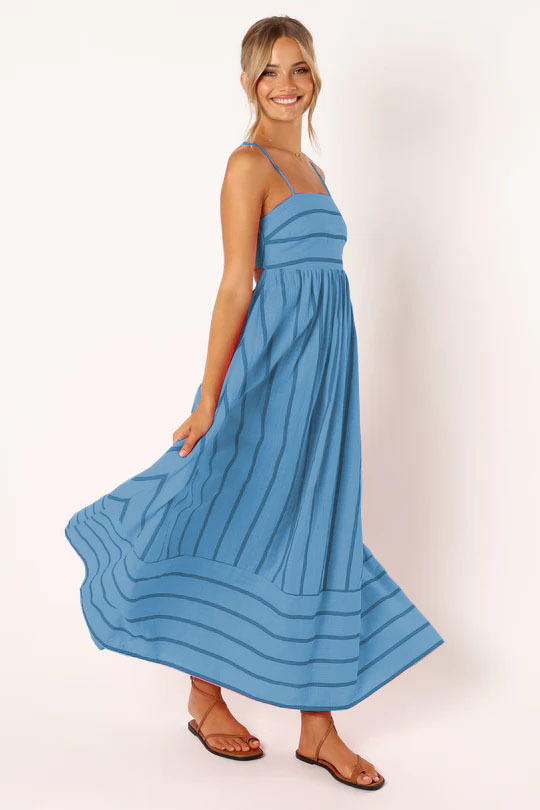 대외 무역 아마존 국경 24 년 봄과 여름 스커트 유럽과 미국 조커 스트라이프 서스펜더 백리스 원피스