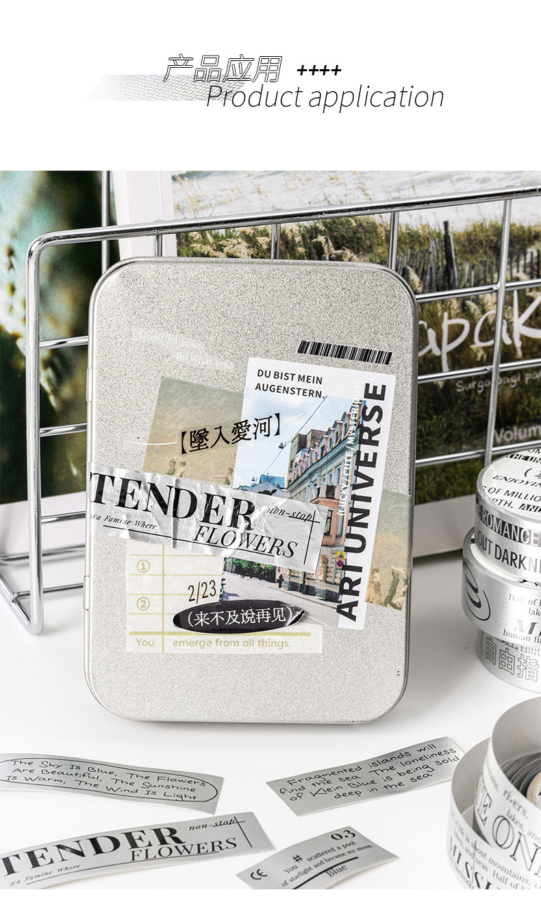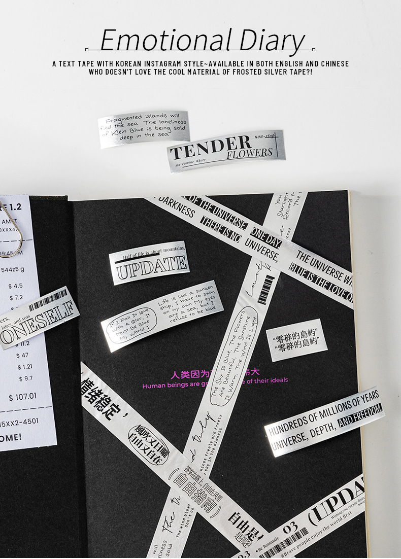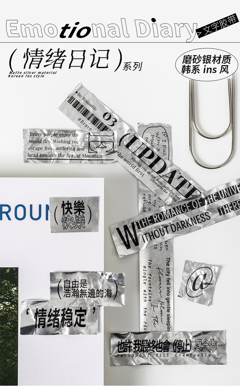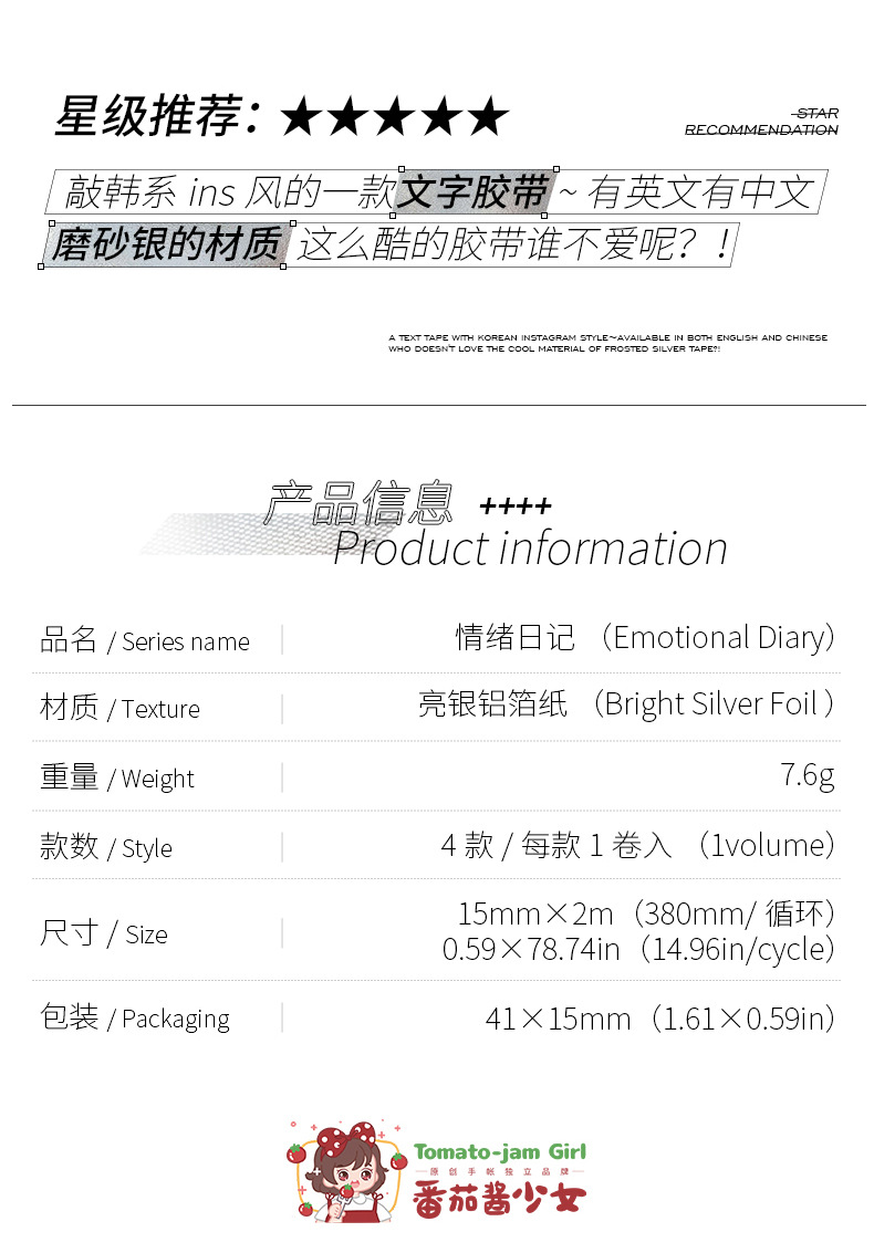 케첩 소녀 테이프 기분 일기 시리즈 프로스트 실버 소재 DIY 손 계정 텍스트 장식 콜라주 4