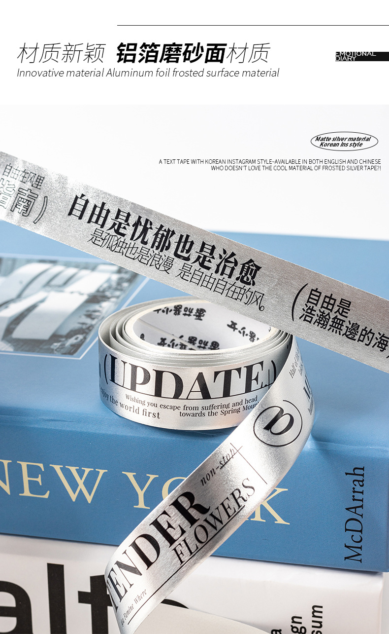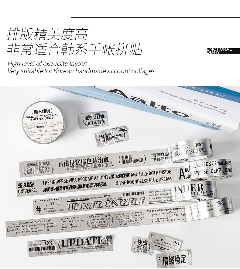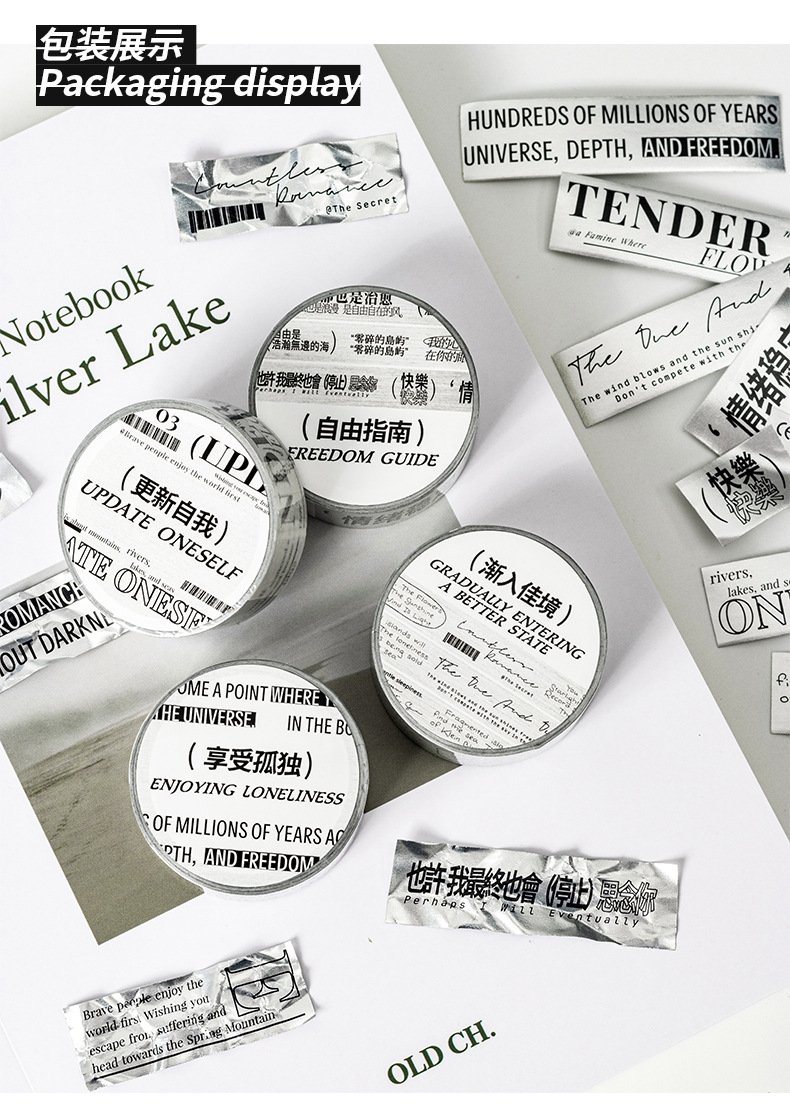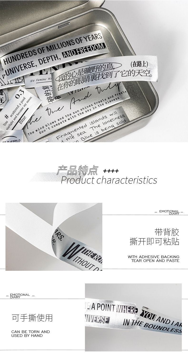 케첩 소녀 테이프 기분 일기 시리즈 프로스트 실버 소재 DIY 손 계정 텍스트 장식 콜라주 4