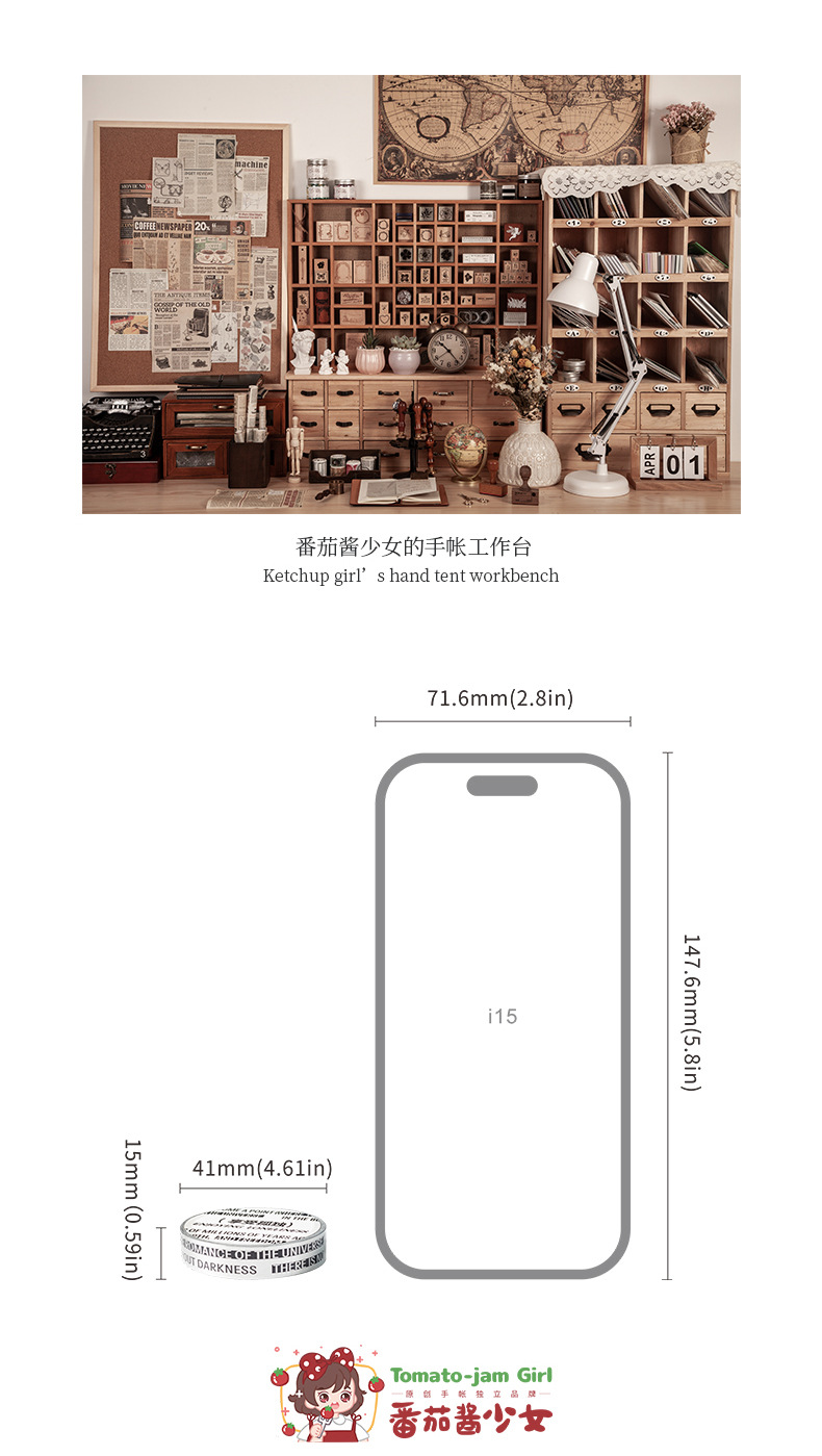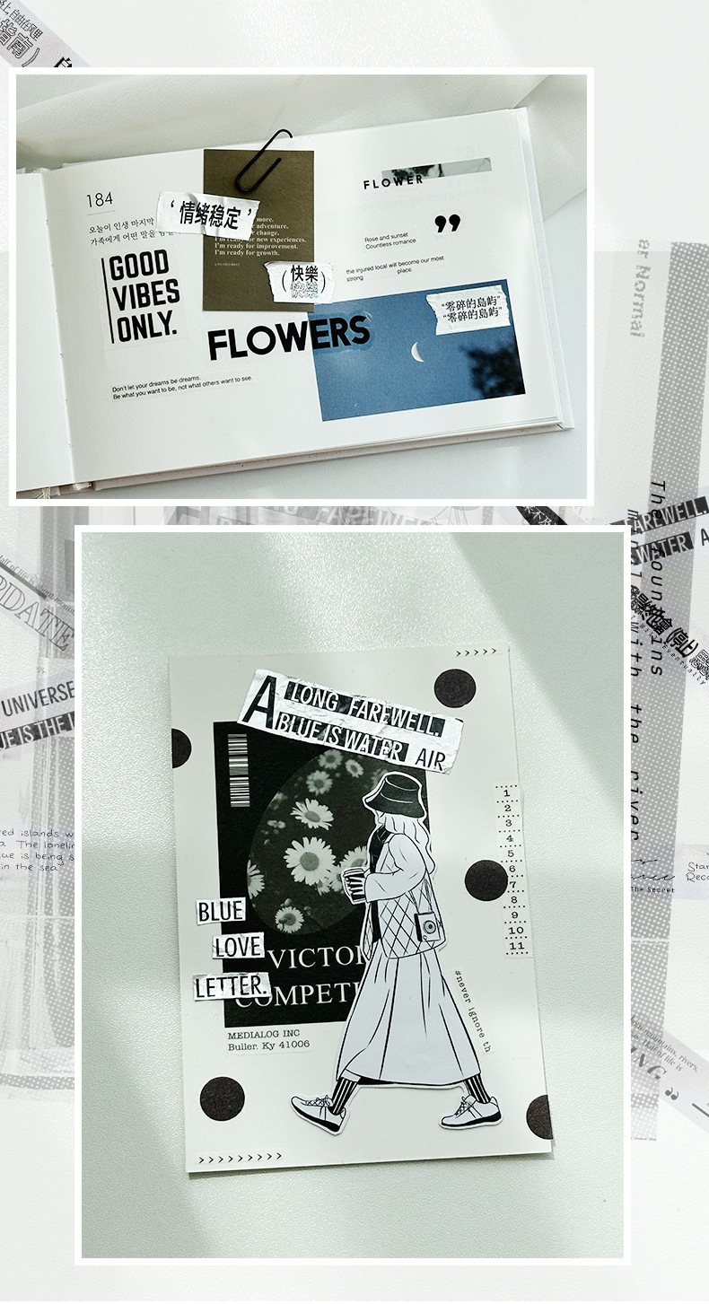 케첩 소녀 테이프 기분 일기 시리즈 프로스트 실버 소재 DIY 손 계정 텍스트 장식 콜라주 4스토어 가기