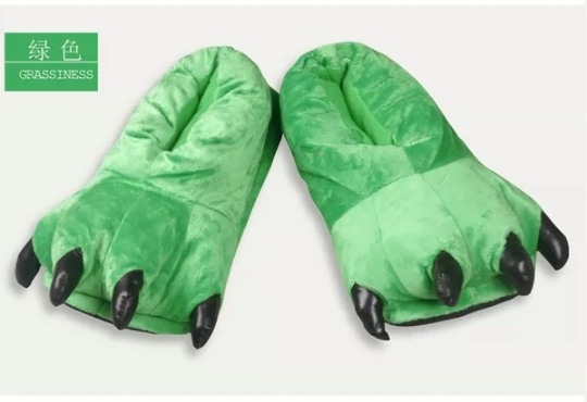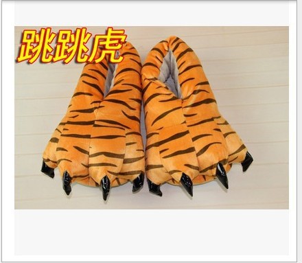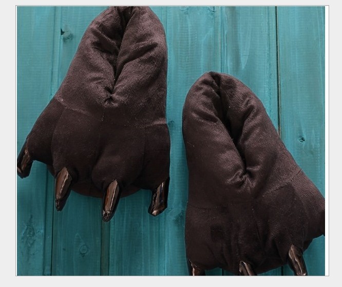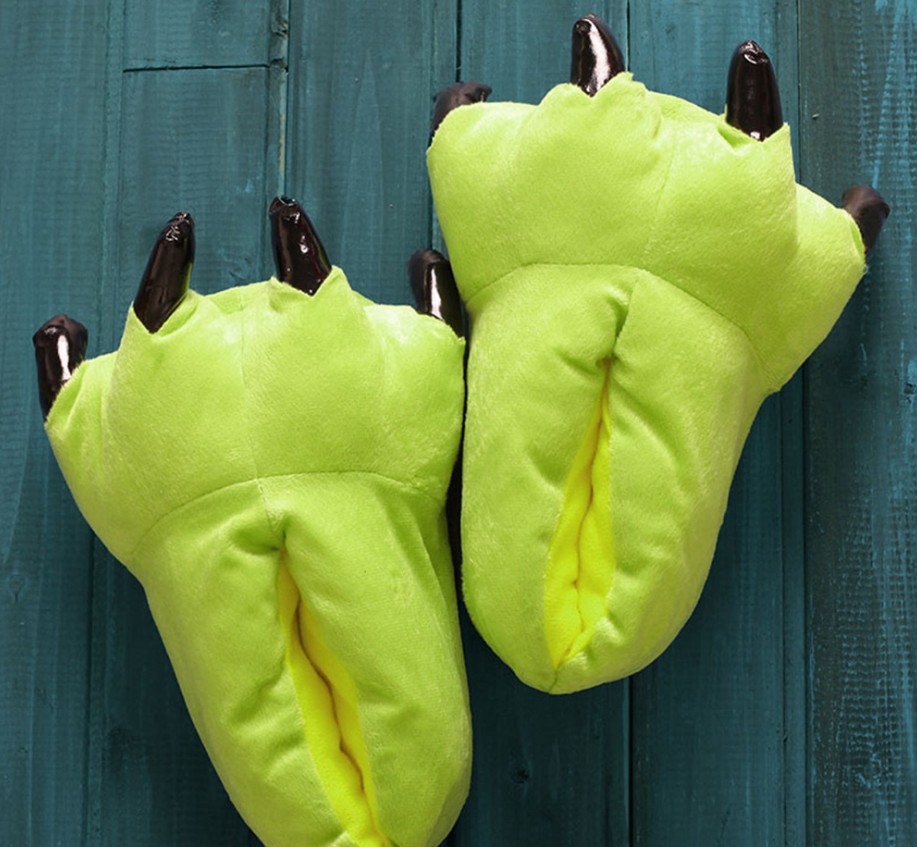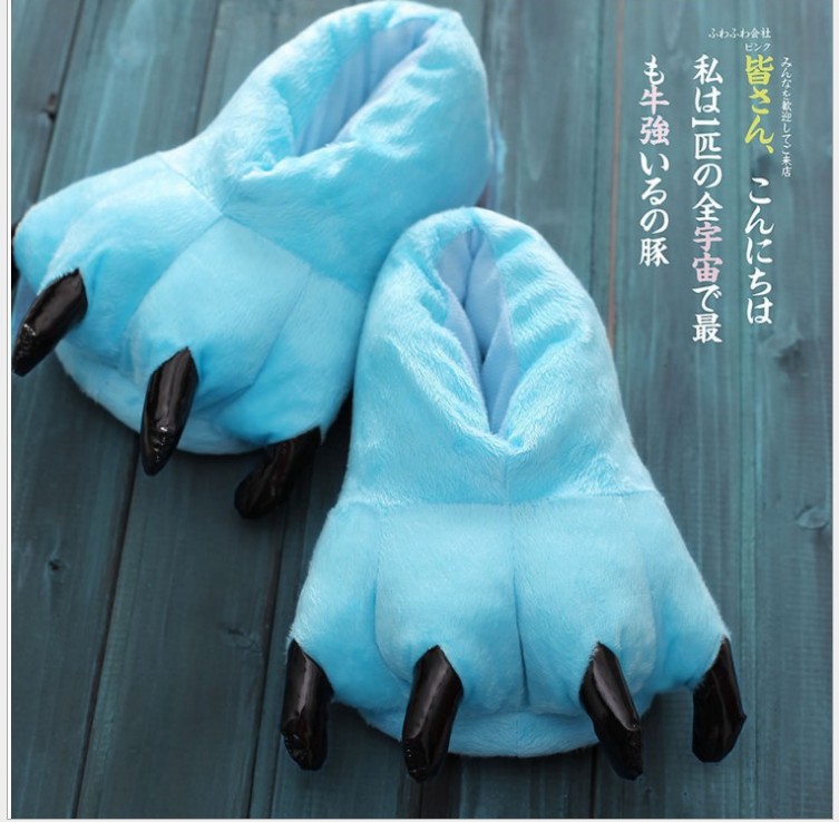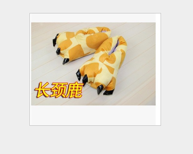 가을과 겨울 남자와 여자의 귀여운 만화 동물 면 신발 공룡 발 신발 두꺼운 기모 가방 루트 홈 플러스 사이즈 슬리퍼