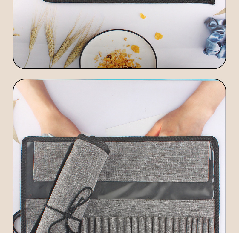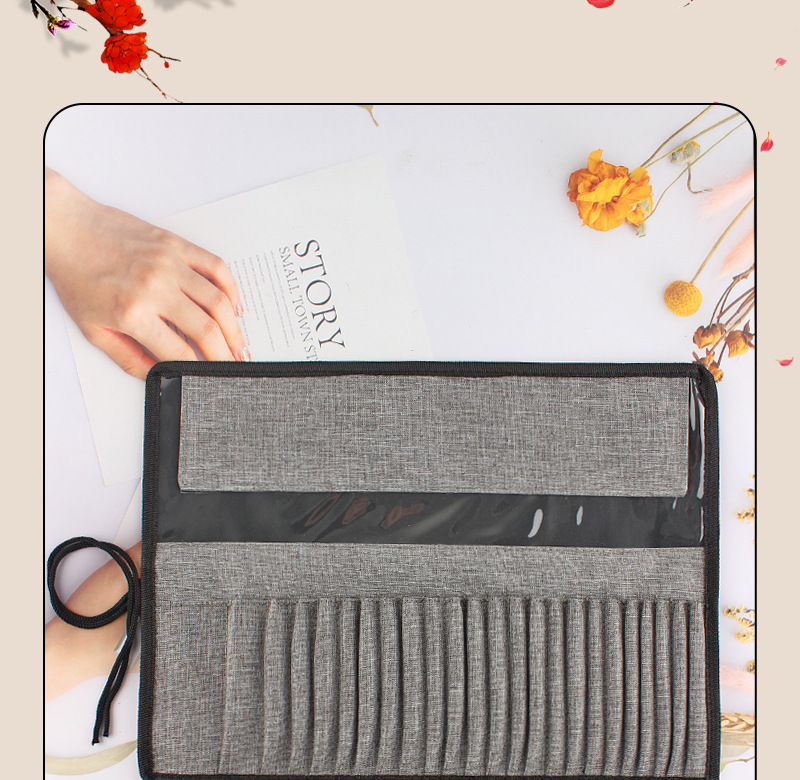 24 나일론 울 브러시 펜 가방 회색 막대 천 가방 오일 브러시 가방 구 아슈 수채화 펜 가방 롤 펜 가방