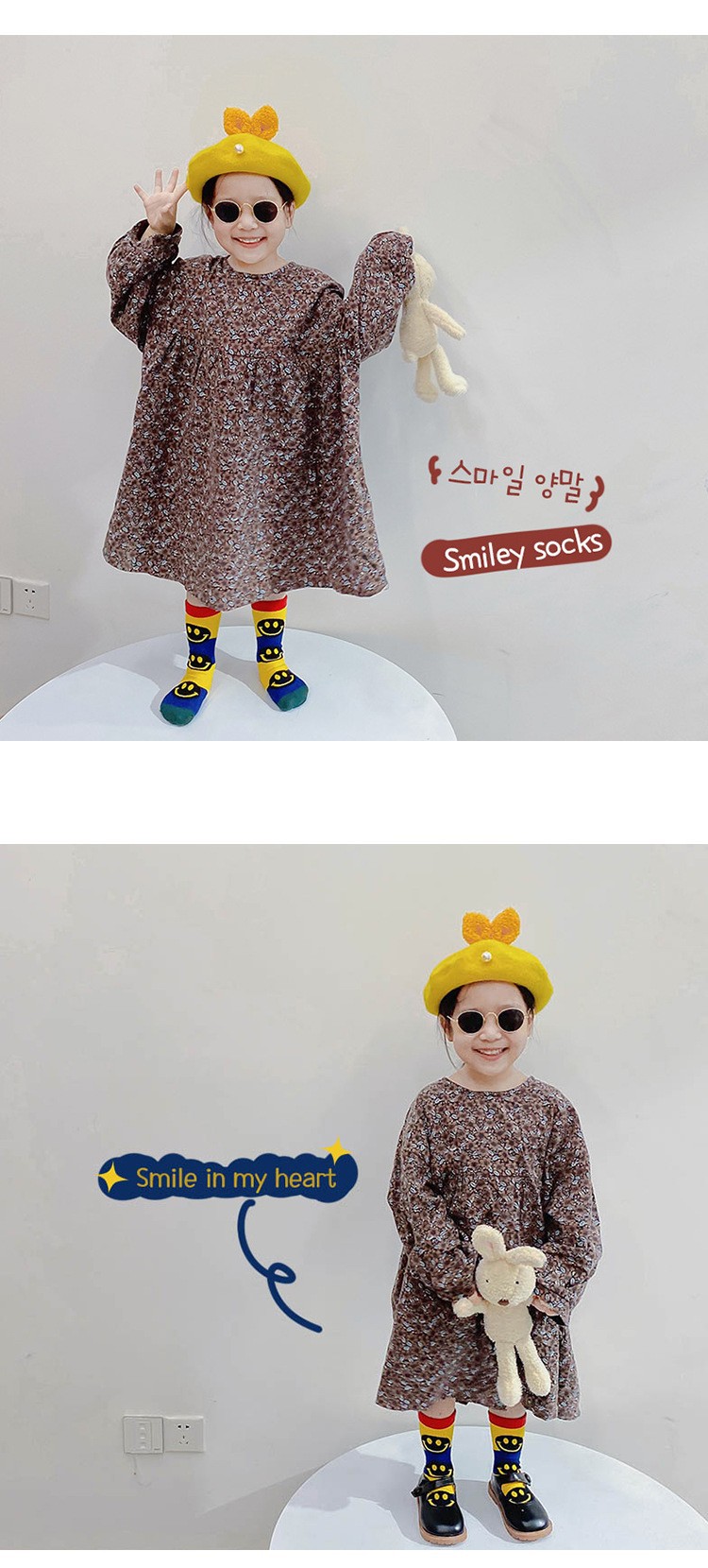 3 쌍의 어린이 양말 봄과 가을과 겨울 낙서 만화 웃는 얼굴 양말 유행 어린이 양말면 남성과 여성의 어린이 중간 튜브 스타킹스토어 가기