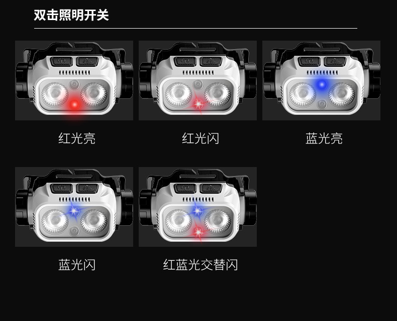 국경 이중 광원 광부의 램프 헤드 장착 작업 램프 야외 장거리 낚시 램프 Led 충전 비상 밝은 전조등