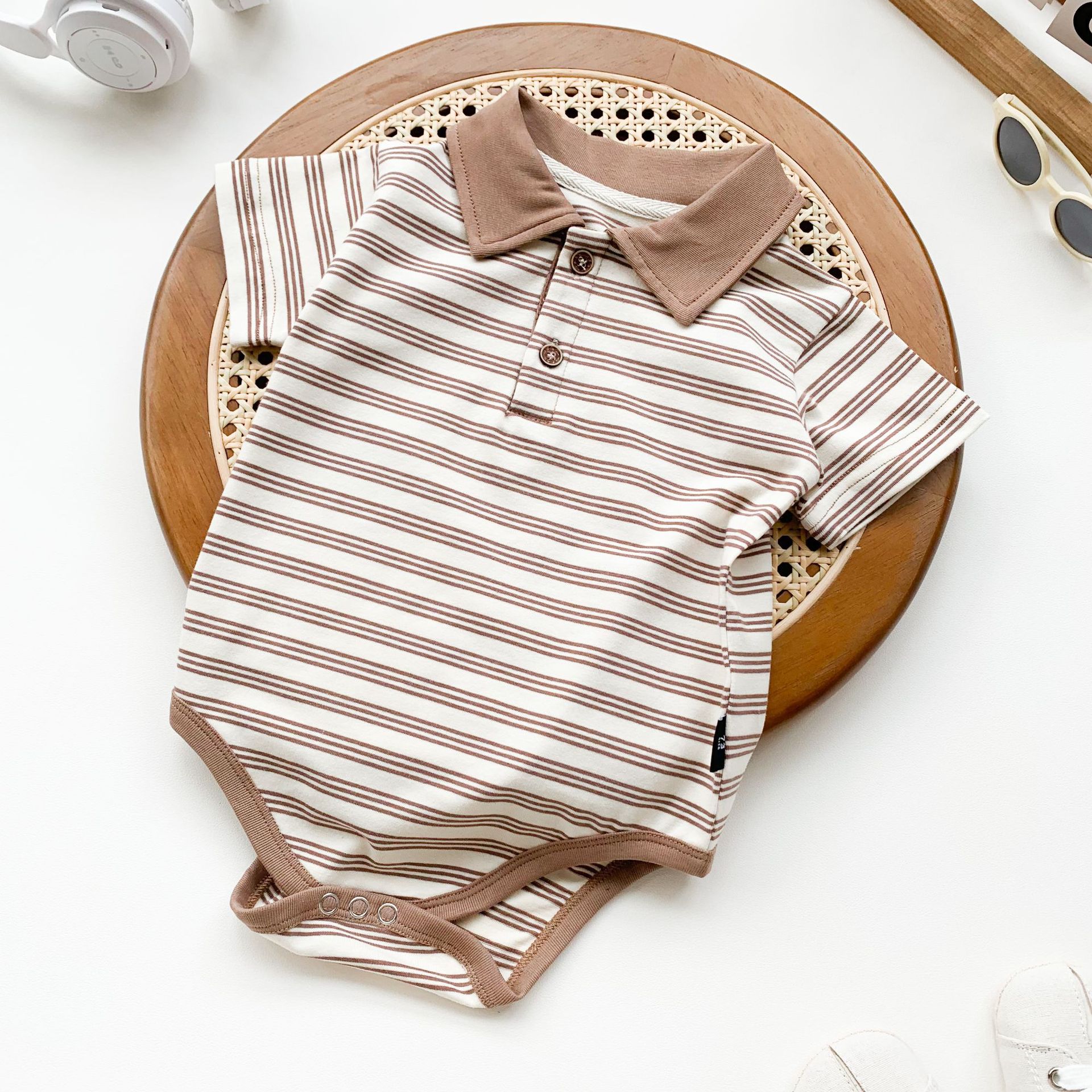 Ins Baby 2024 여름 새로운 도착 남성 스트라이프 백 의류 신사 폴로 반팔 등반 패션스토어 가기