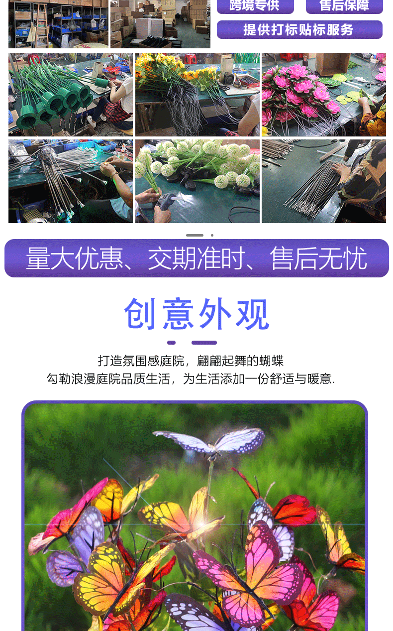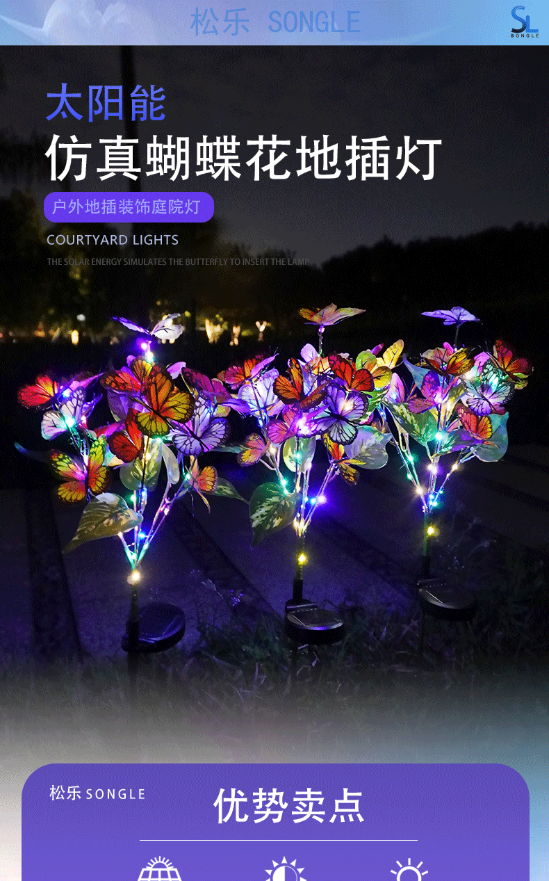 아마존 제조 업체 단결정 실리콘 태양 나비 랜턴 led 야외 잔디 램프 시뮬레이션 장식 풍경 램프스토어 가기