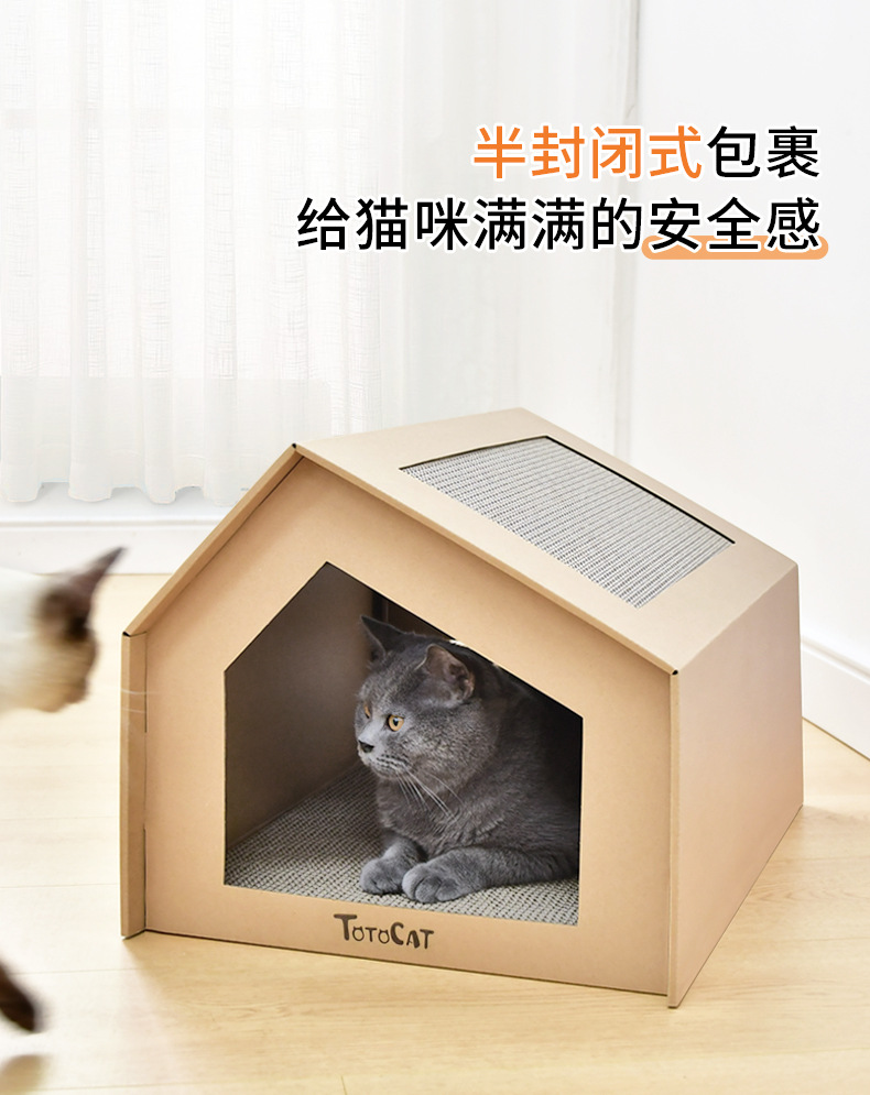 사계절 사용 가능한 고양이 둥지, 반밀폐형 고양이 상자 하우스, 내마모성, 부스러기가 잘 생기지 않음, 사계절 내내 고양이가 놀 수 있는 밀폐형 올인원 하우스