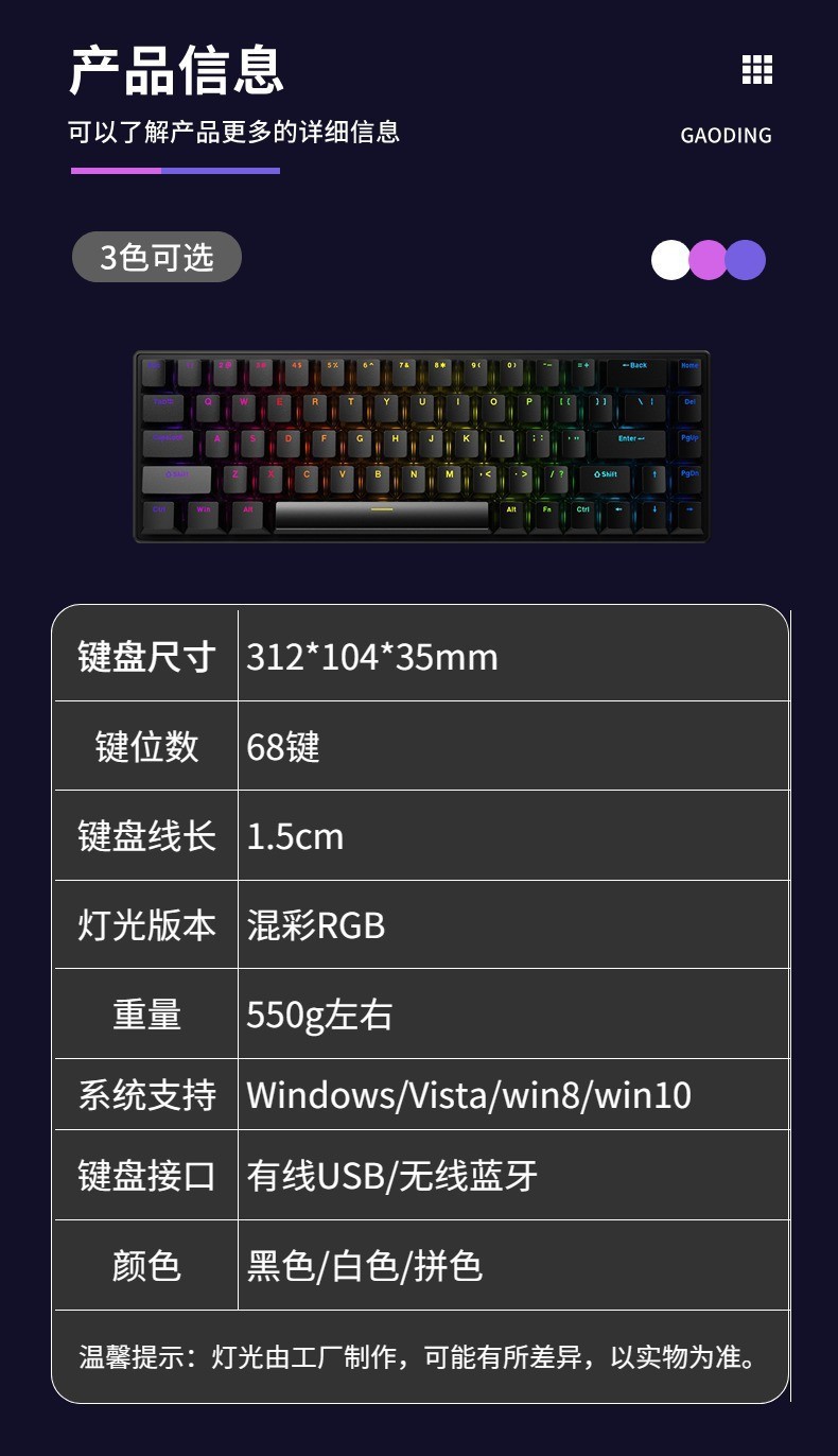 • 68 키 기계식 키보드 흰색. (영어) 유형-c 유선 연결