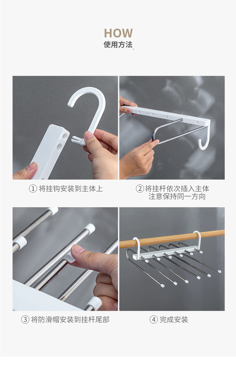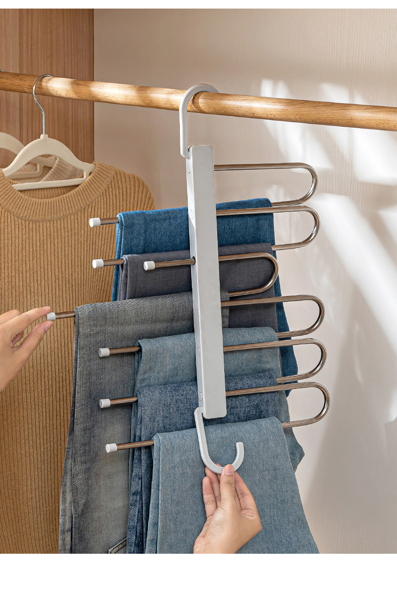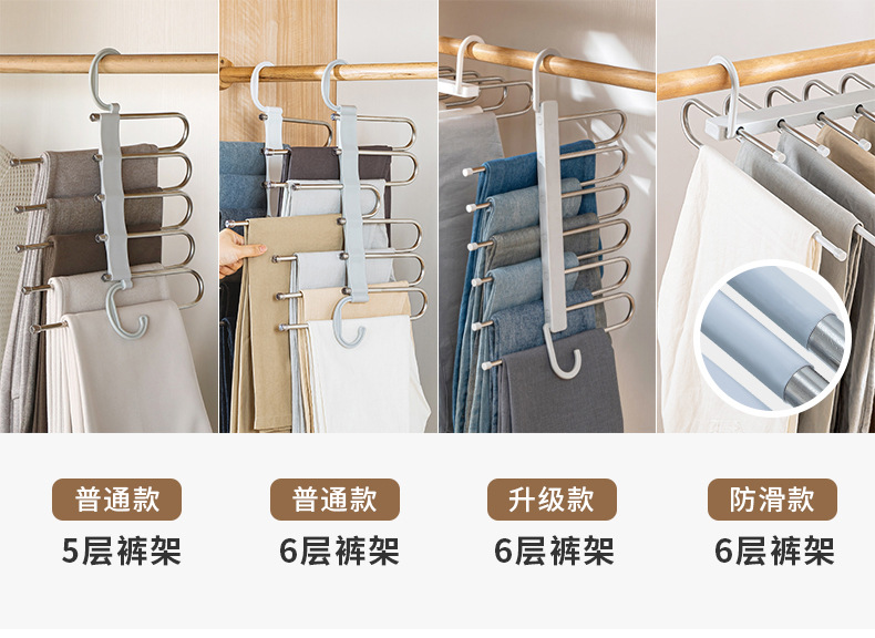 Fengquan 미끄럼 방지 원활한 바지 랙 접이식 옷걸이 가정용 바지 걸이 보관 랙 바지 클립 옷장 보관