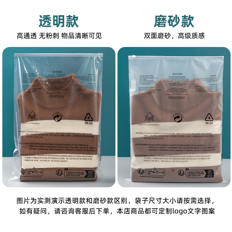 국경 간 PP 경고 지퍼 가방 투명 서리 의류 포장 가방 두꺼운 자체 밀봉 의류 포장 가방 도매스토어 가기
