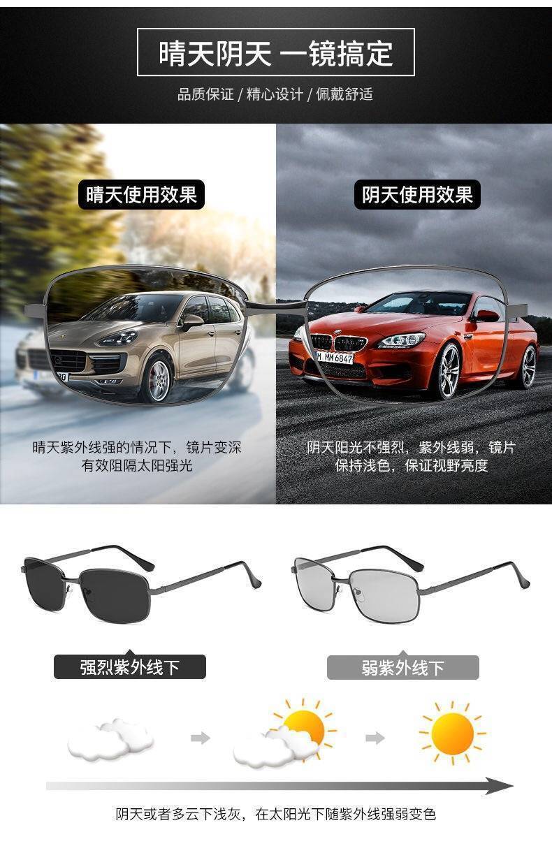 편광 선글라스 고화질 감광성 색상 변경 선글라스 남성 유니버설 라이브 방송 폭발 블랙 풀 프레임 안경스토어 가기