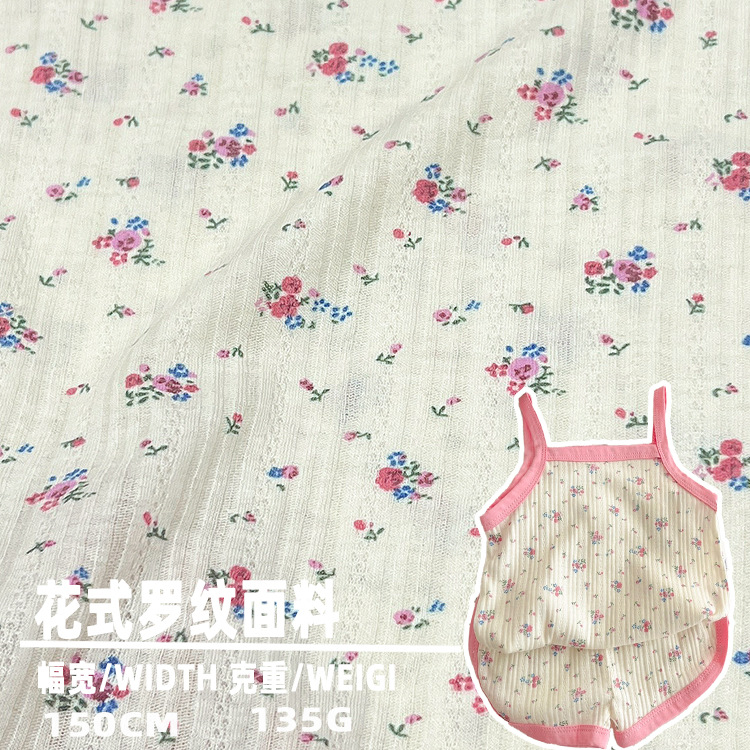 봄과 여름 립 루프 꽃 인쇄 헝겊 수분 흡수 통기성 어린이 가정 옷 얇은 조끼 세트 직물