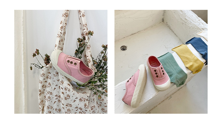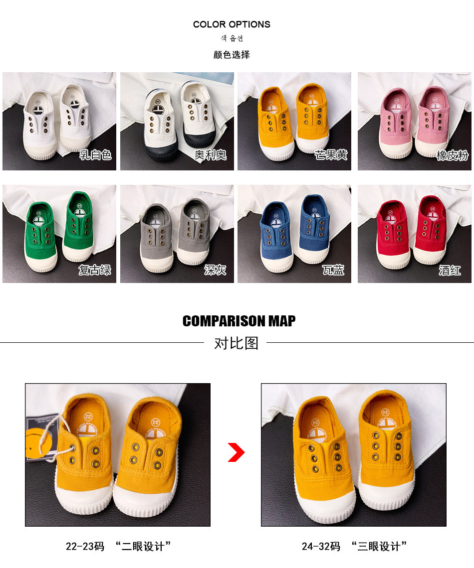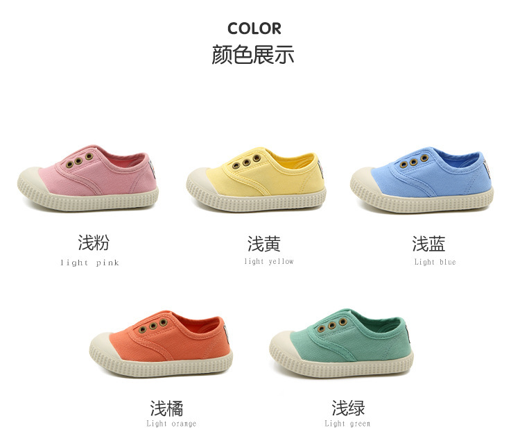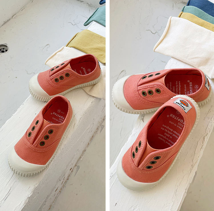 한국 캔디 컬러 어린이 캔버스 신발 봄과 가을 소년 소녀를위한 슬립 온 천 신발 유치원 아기 소프트 단독 실내 신발스토어 가기