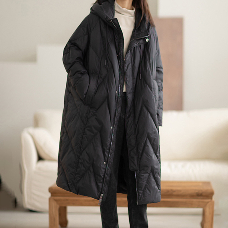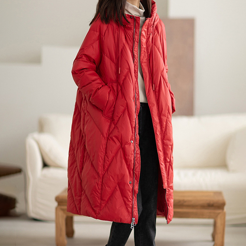 2024 가을과 겨울 느슨한 플러스 사이즈 흰 오리 다운 재킷 후드 따뜻한 패션 서양식 겨울 긴 코트 여성