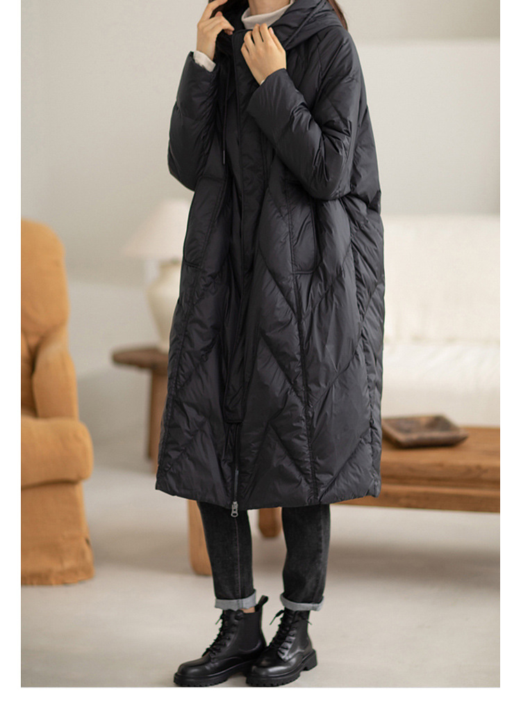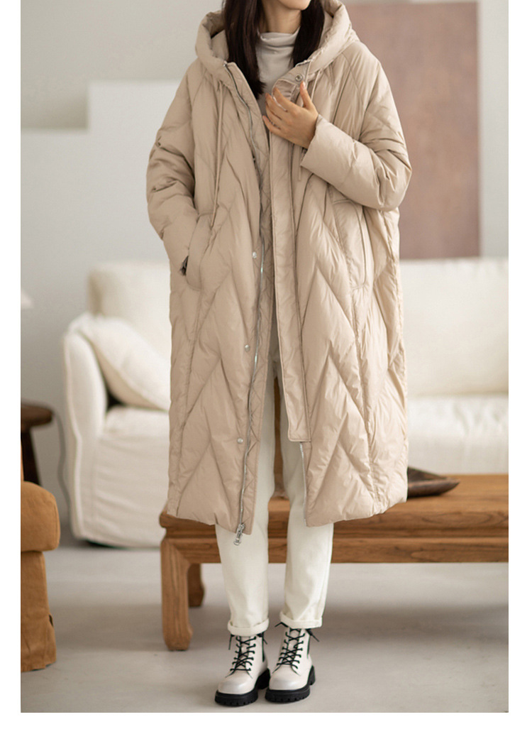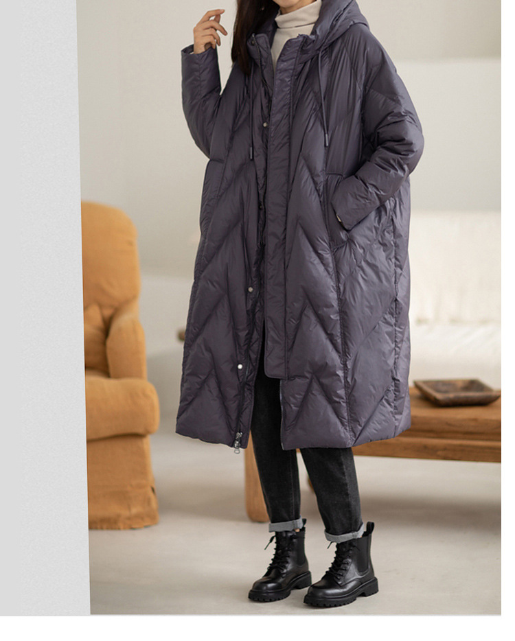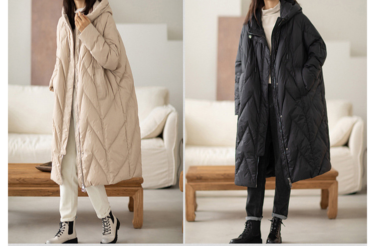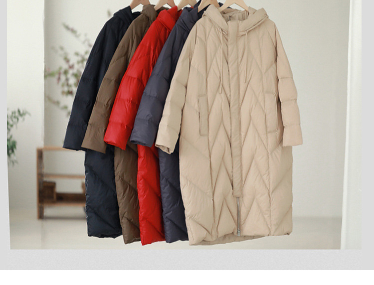 2024 가을과 겨울 느슨한 플러스 사이즈 흰 오리 다운 재킷 후드 따뜻한 패션 서양식 겨울 긴 코트 여성스토어 가기