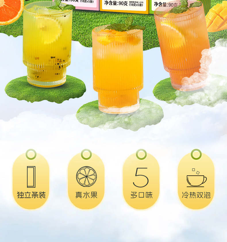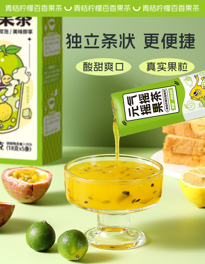 Yan Hua Ji 그린 오렌지 레몬 패시 프루트 다양한 맛 잼 차 독립 작은 패키지 버블 워터 드링크스토어 가기