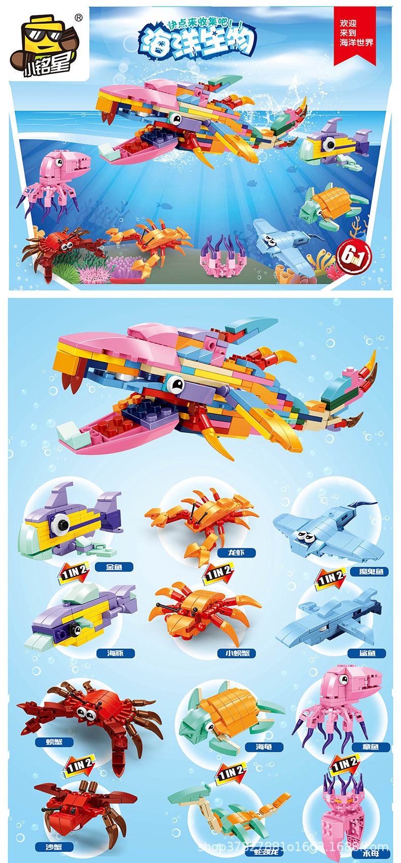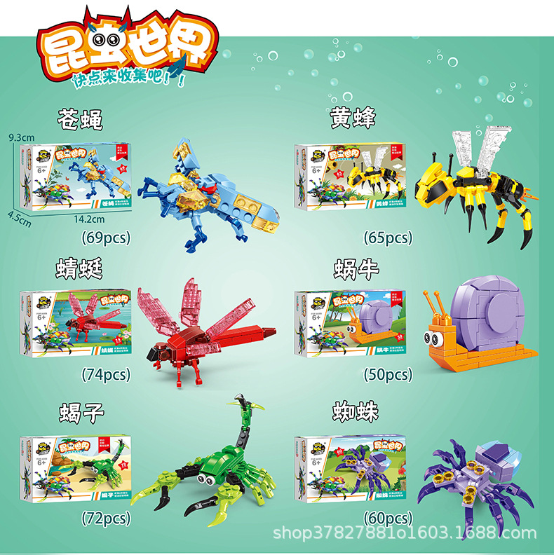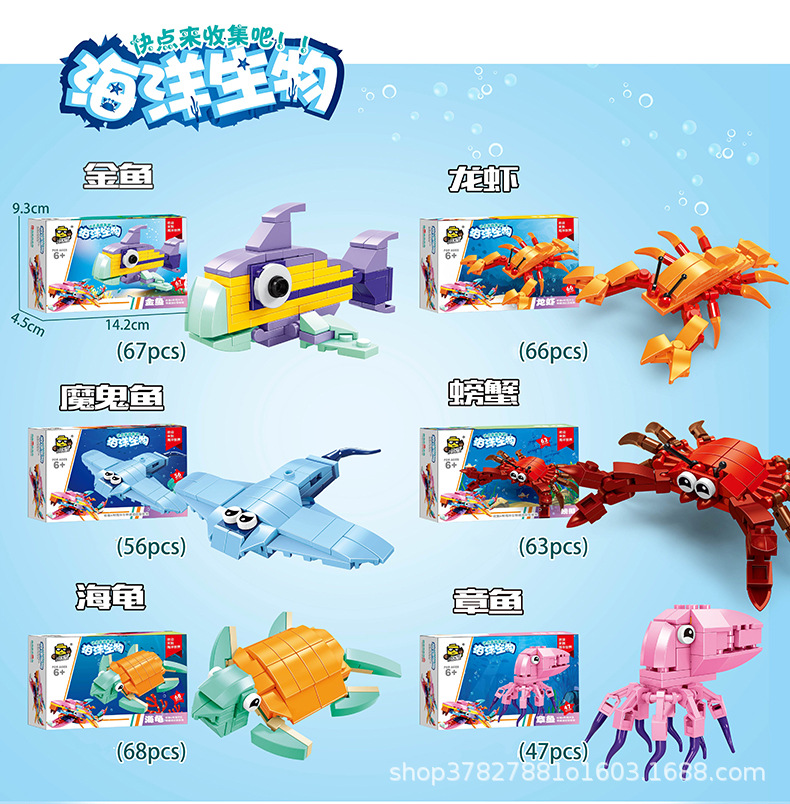 Yiqi 소년과 소녀 조립 건물 블록 작은 입자 장난감 해양 곤충 공룡 동물 모델 어린이 선물