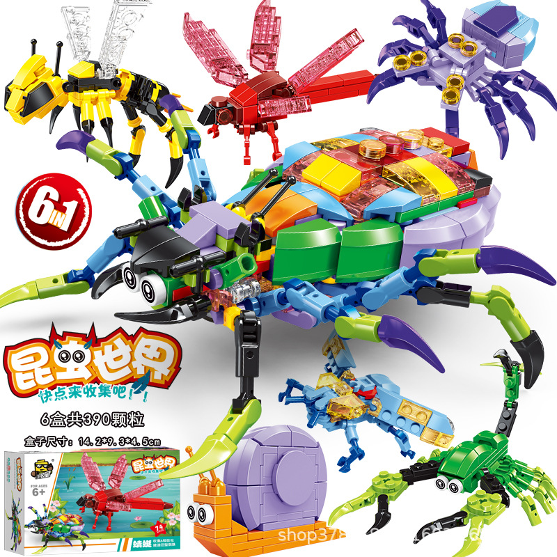 Yiqi 소년과 소녀 조립 건물 블록 작은 입자 장난감 해양 곤충 공룡 동물 모델 어린이 선물스토어 가기