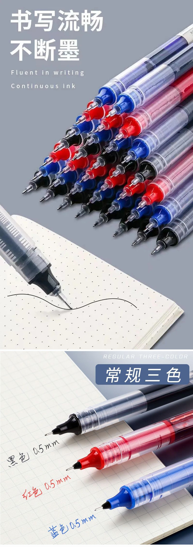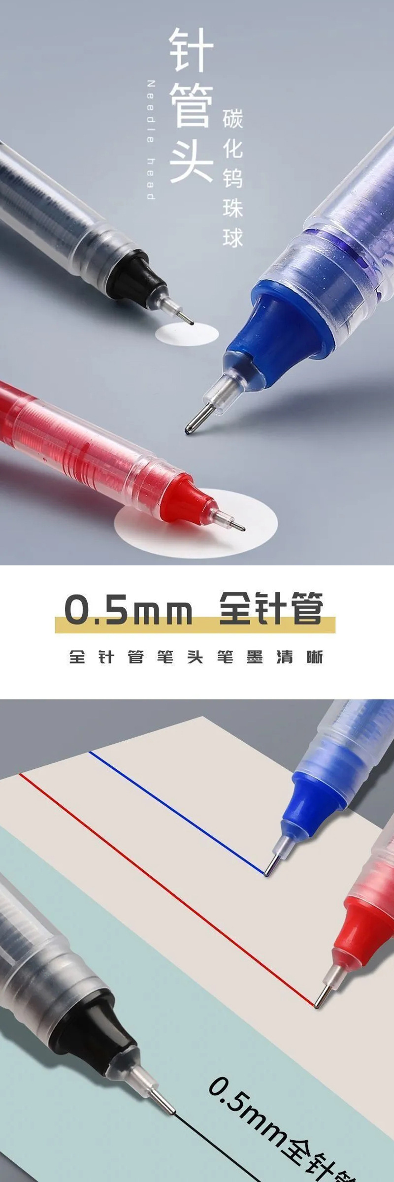 빠른 건조 직접 액체 볼 펜 0.5mm 컬러 블랙 젤 펜 학생 시험 펜 바늘 펜 탄소