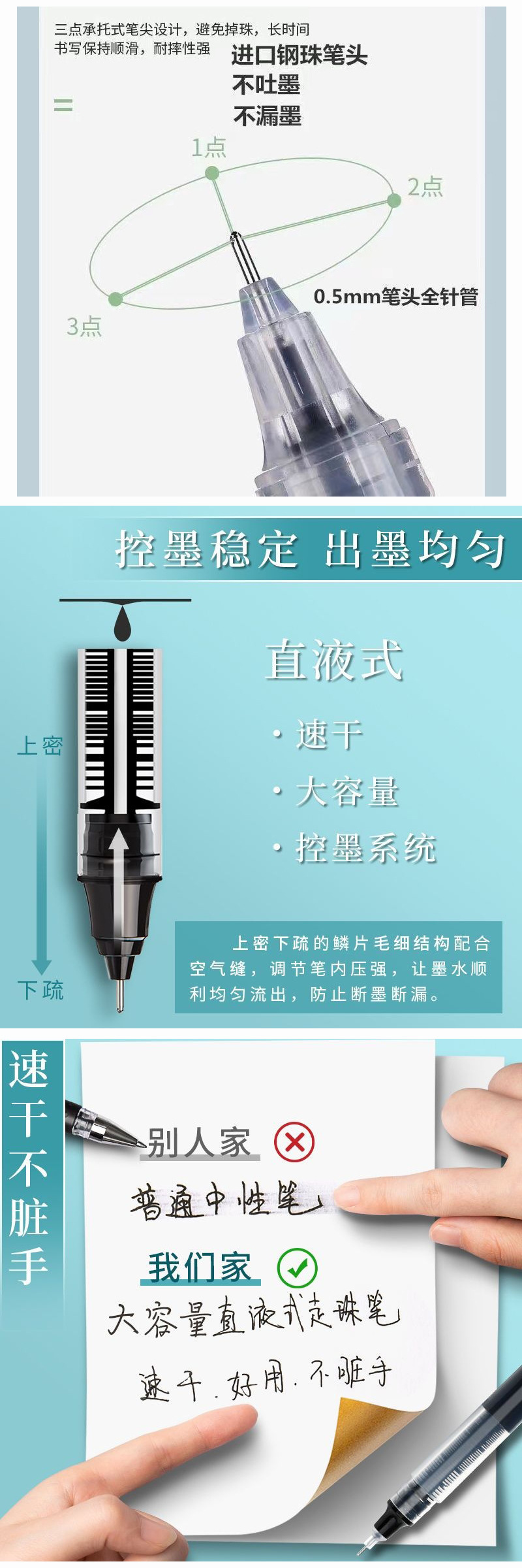 빠른 건조 직접 액체 볼 펜 0.5mm 컬러 블랙 젤 펜 학생 시험 펜 바늘 펜 탄소스토어 가기