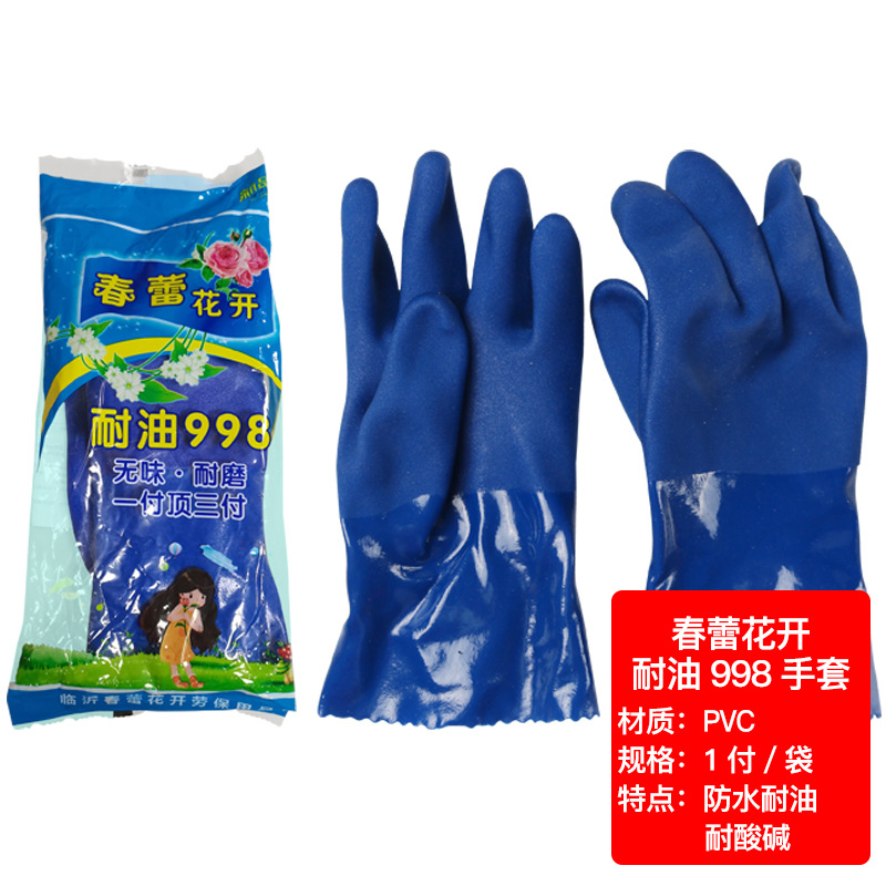 산업용 산 및 알칼리 저항성 오일 저항성 스프링 버드 pvc 블루 프로스트 딥 플라스틱 화학 물질 보호 부식 방지 노동 보호 화학 장갑스토어 가기