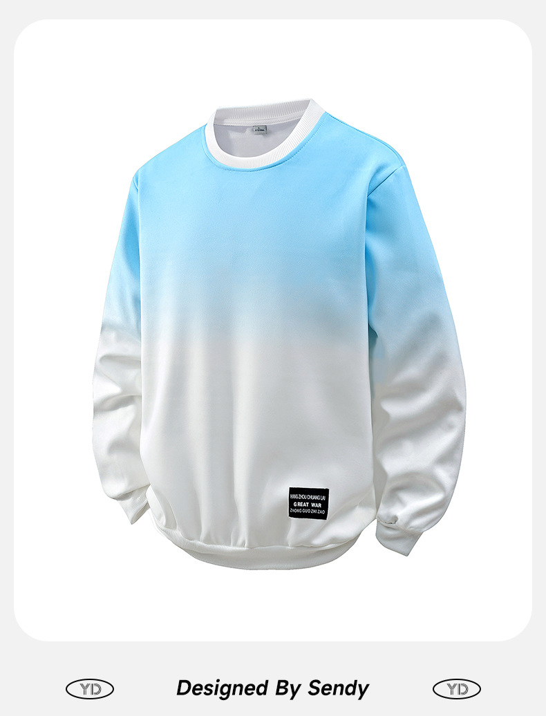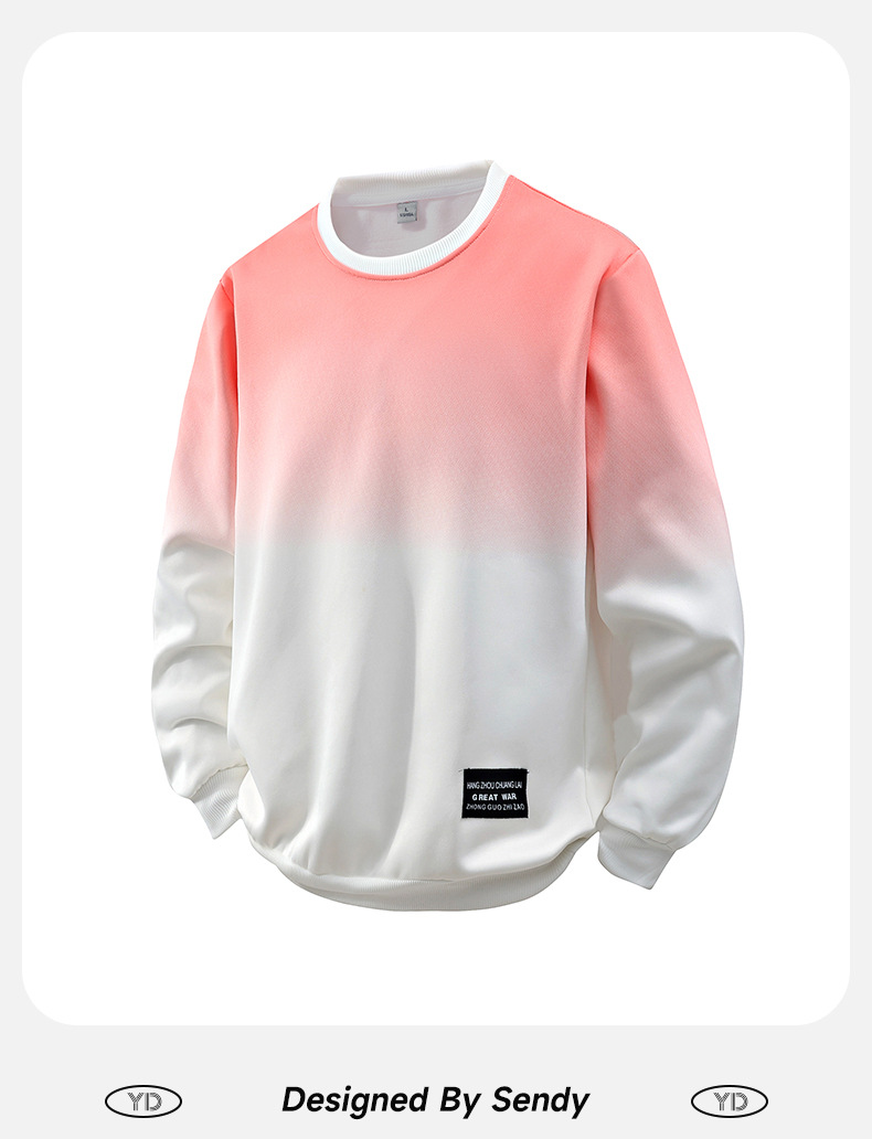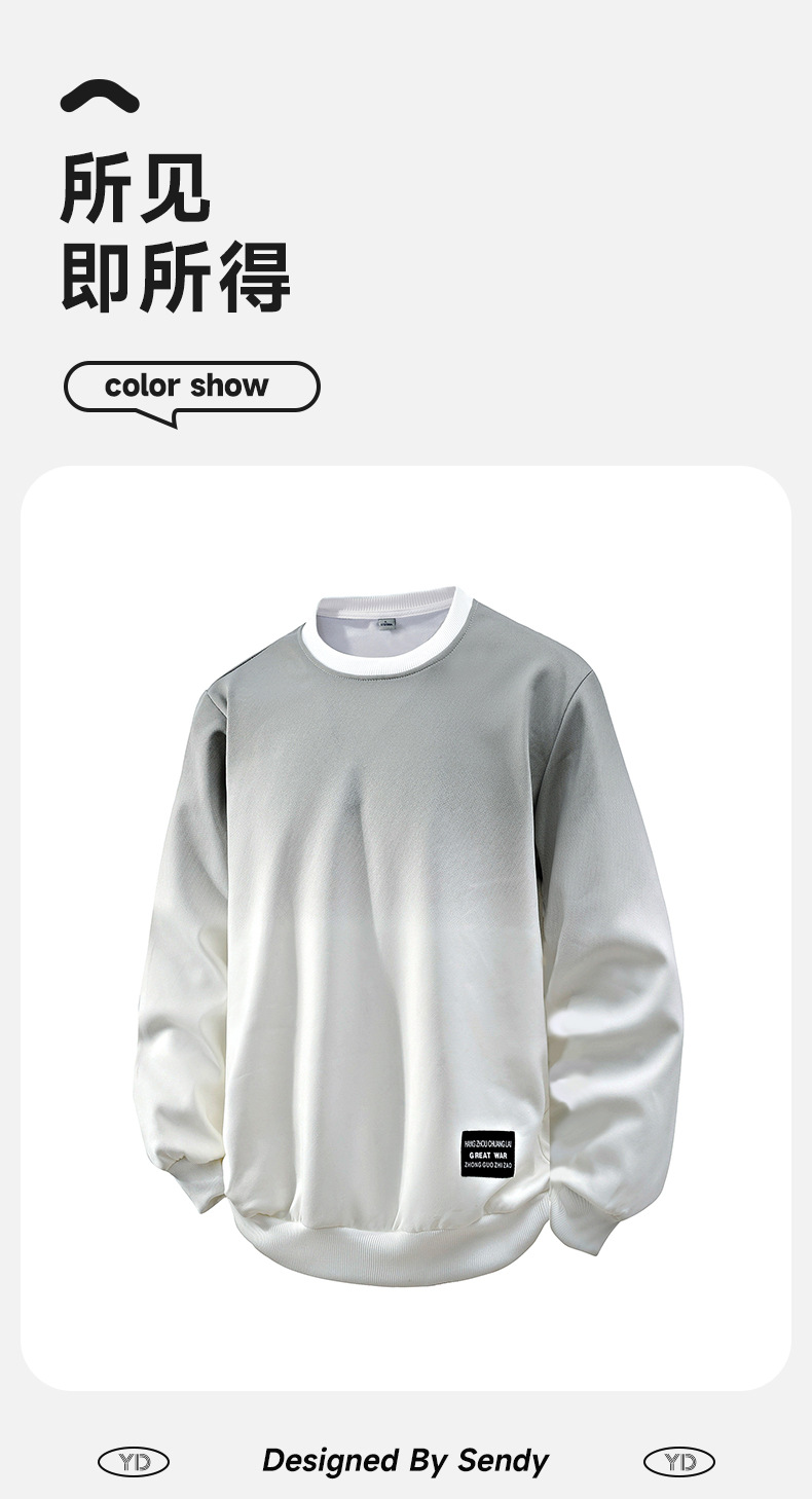 남성용 봄 가을 신상품 아메리칸 레트로 그라데이션 컬러 라운드넥 스웨트셔츠 빅사이즈 루즈핏 트렌디 브랜드 긴팔 상의