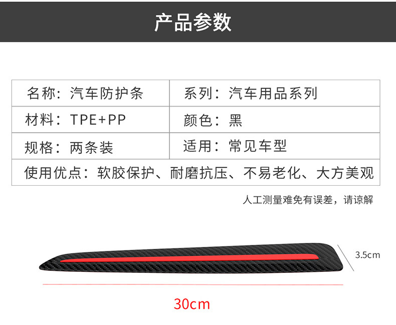不管是新手还是高手,在平时开车时难免小刮小碰的。有时难免大意在开门的时候碰到墙或绿化带,很容易就被碰触一点一点的刮痕。严重影响了车身,时间长了还会生锈。有了这个防撞条,可以避免这种情况,相当的有效。看是简单,作用不小哦!安装容易,选料上乘,恒久耐用。