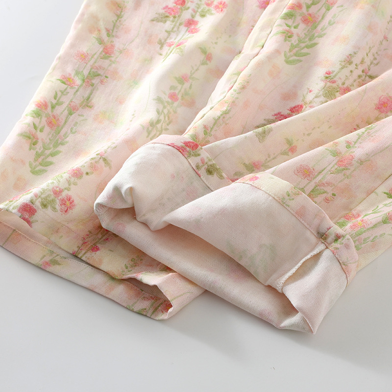 • 가슴 패드 대나무 섬유 긴 소매 바지 여름 장미