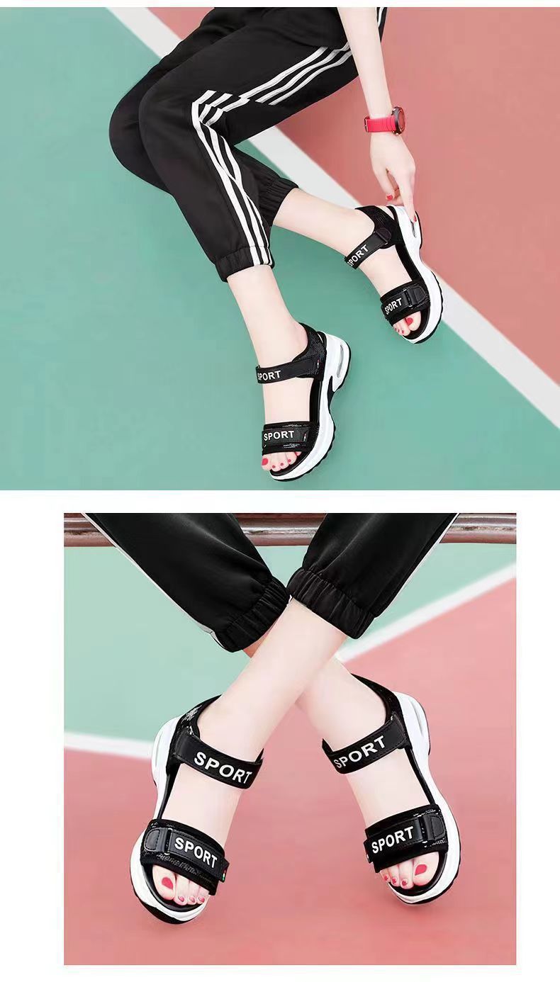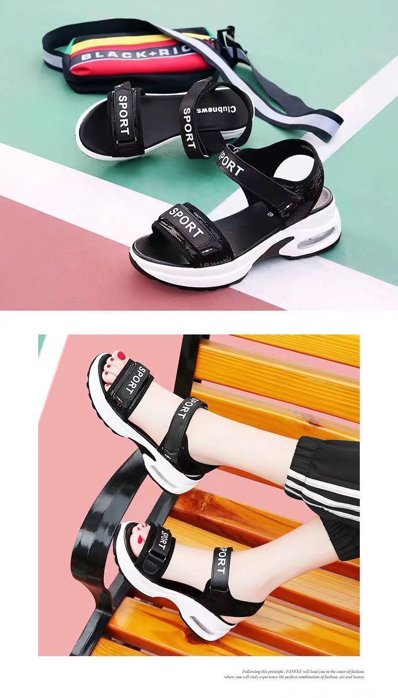 에어 쿠션 바닥 스포츠 샌들 여자 2024 년 여름 새로운 올 매치 사이버 셀레 브럼 플랫폼 두꺼운 바닥 학생 소프트 하단 비치 슈즈