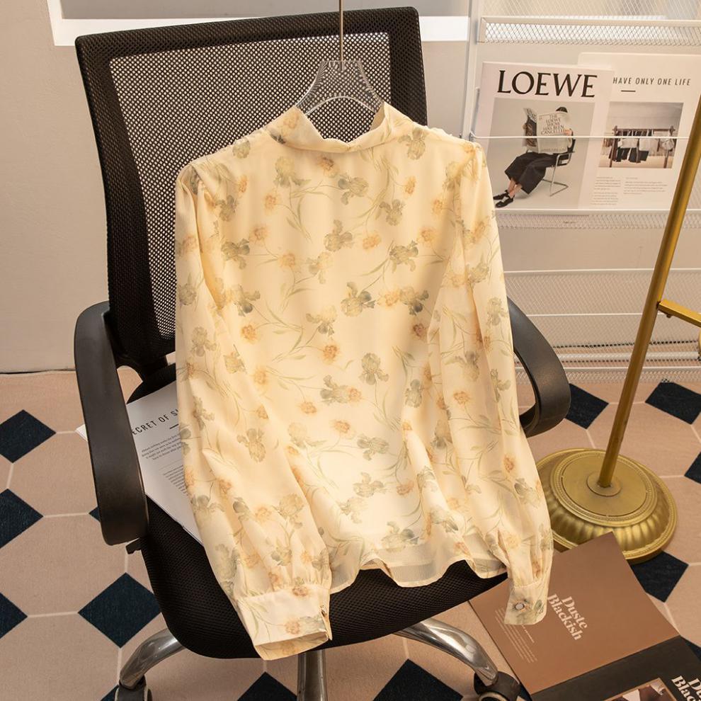 2024 봄 새로운 꽃 쉬폰 셔츠 여성 프랑스 스타일 디자인 올 매치 서양식 타이트 허리 시폰 탑스토어 가기