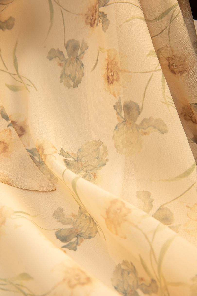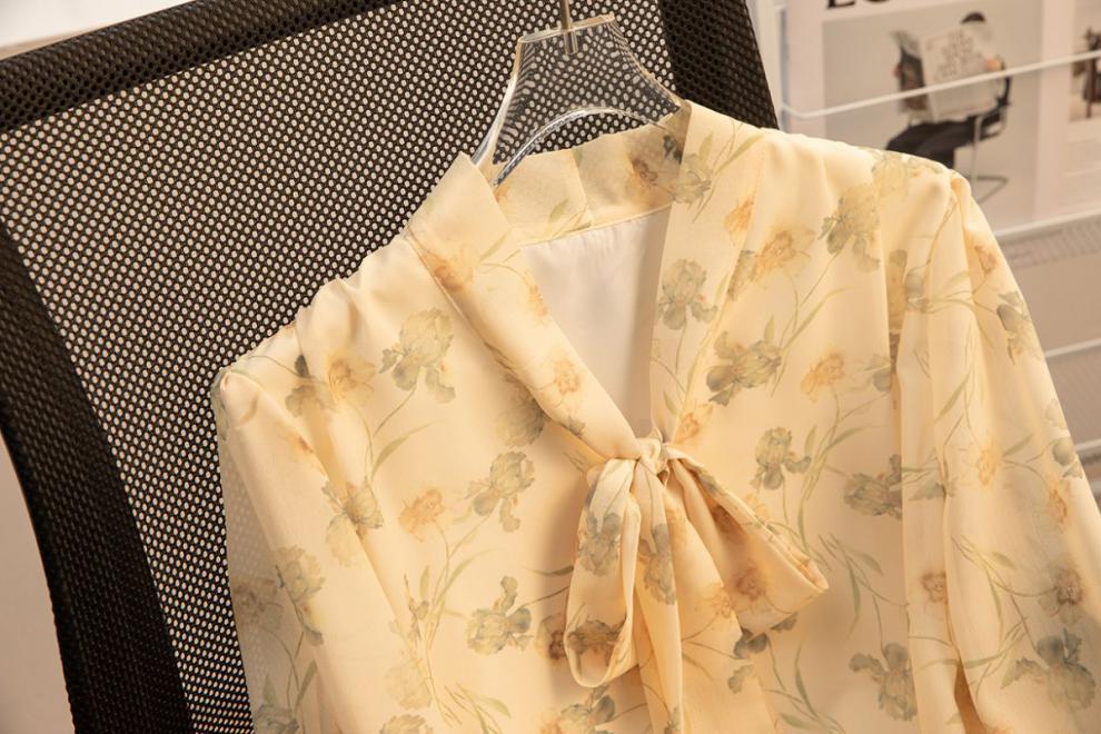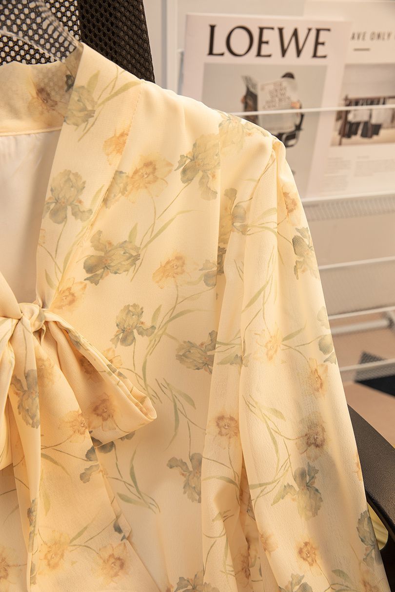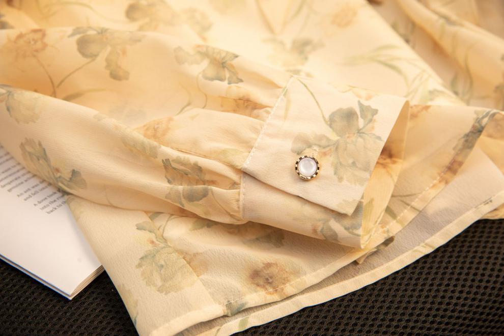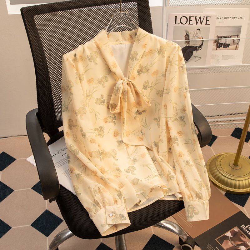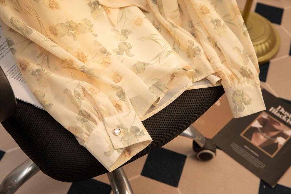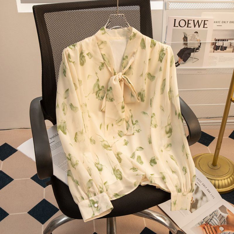 2024 봄 새로운 꽃 쉬폰 셔츠 여성 프랑스 스타일 디자인 올 매치 서양식 타이트 허리 시폰 탑