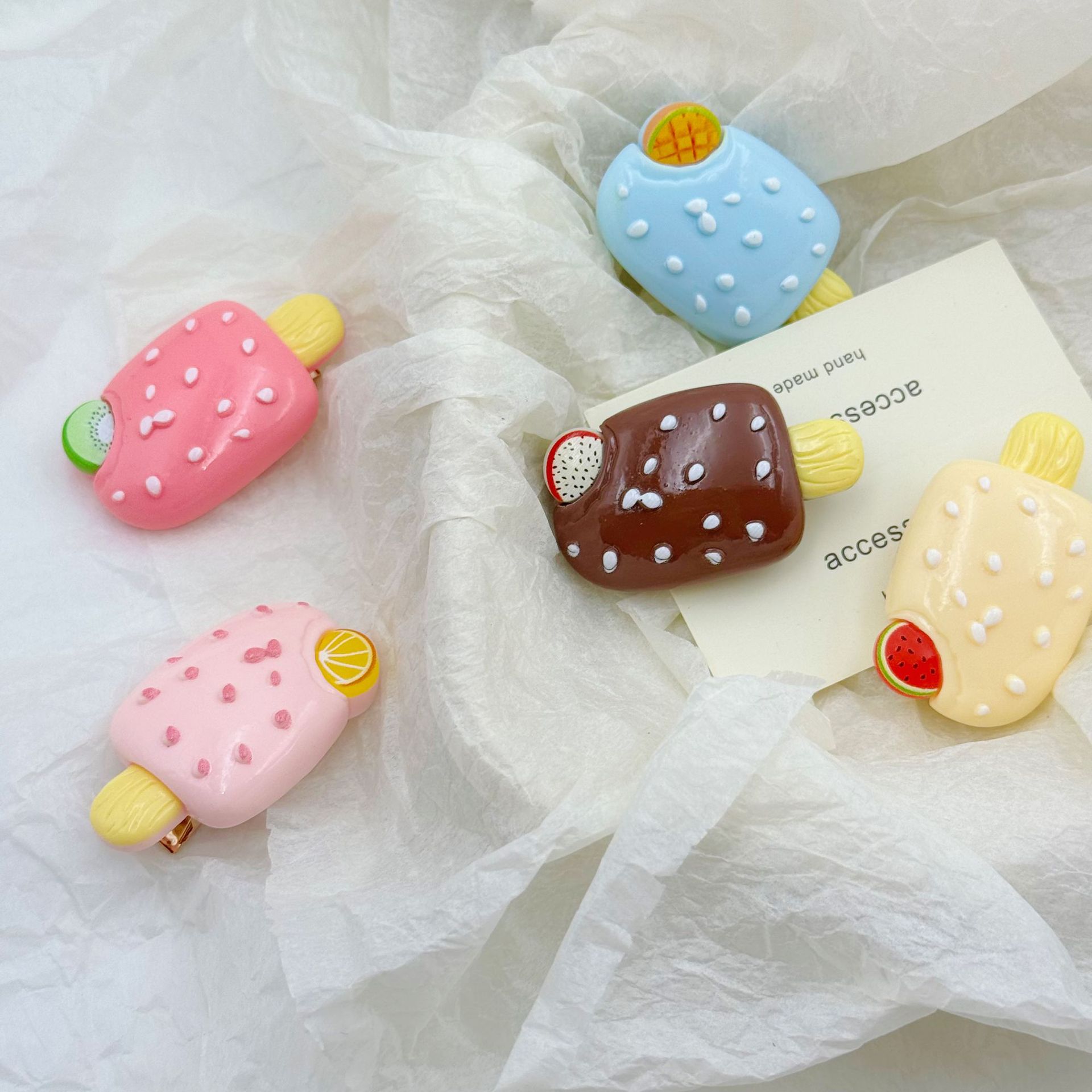모조 아이스 고드름 헤어핀 달콤한 만화 과일 맛 아이스크림 뱅 재미있는 성격 재미 학생 헤어 액세서리 머리스토어 가기