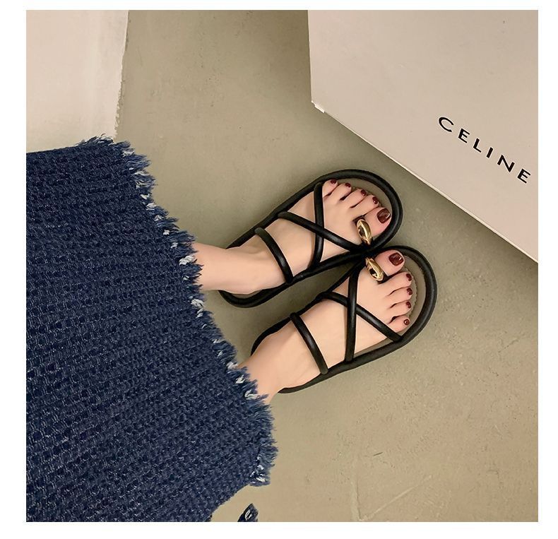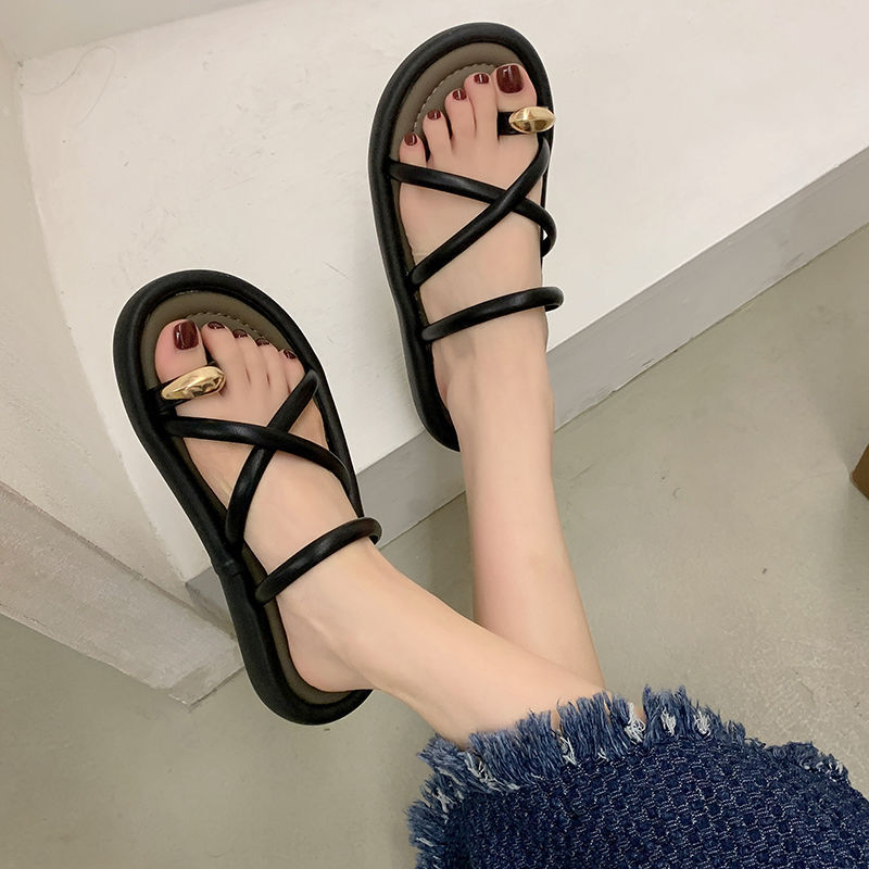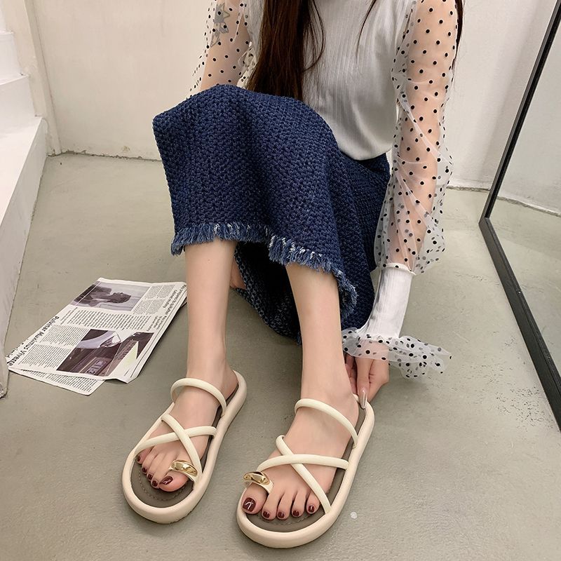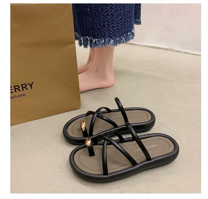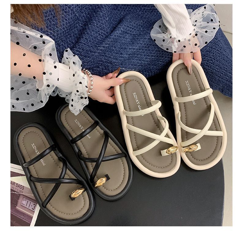 2024 여름 새로운 스타일 슬리퍼 여성 외부 착용 작은 신선한 평면 샌들 여성 작은 요정 스타일 귀여운 패션 인터넷 인기있는 여성 신발