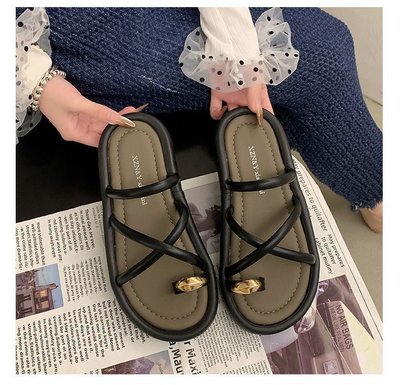2024 여름 새로운 스타일 슬리퍼 여성 외부 착용 작은 신선한 평면 샌들 여성 작은 요정 스타일 귀여운 패션 인터넷 인기있는 여성 신발스토어 가기