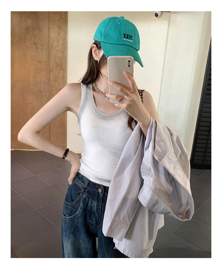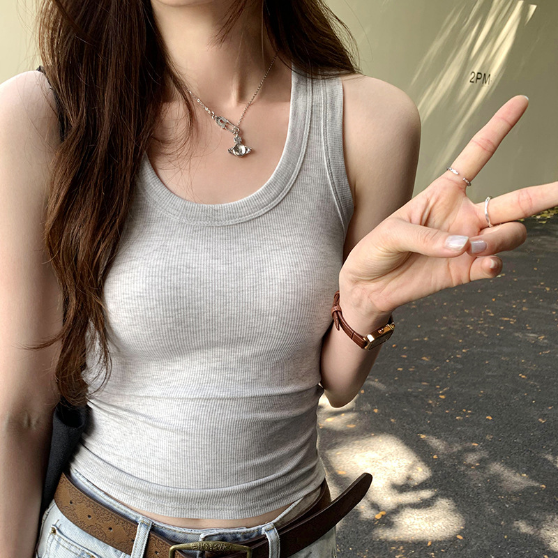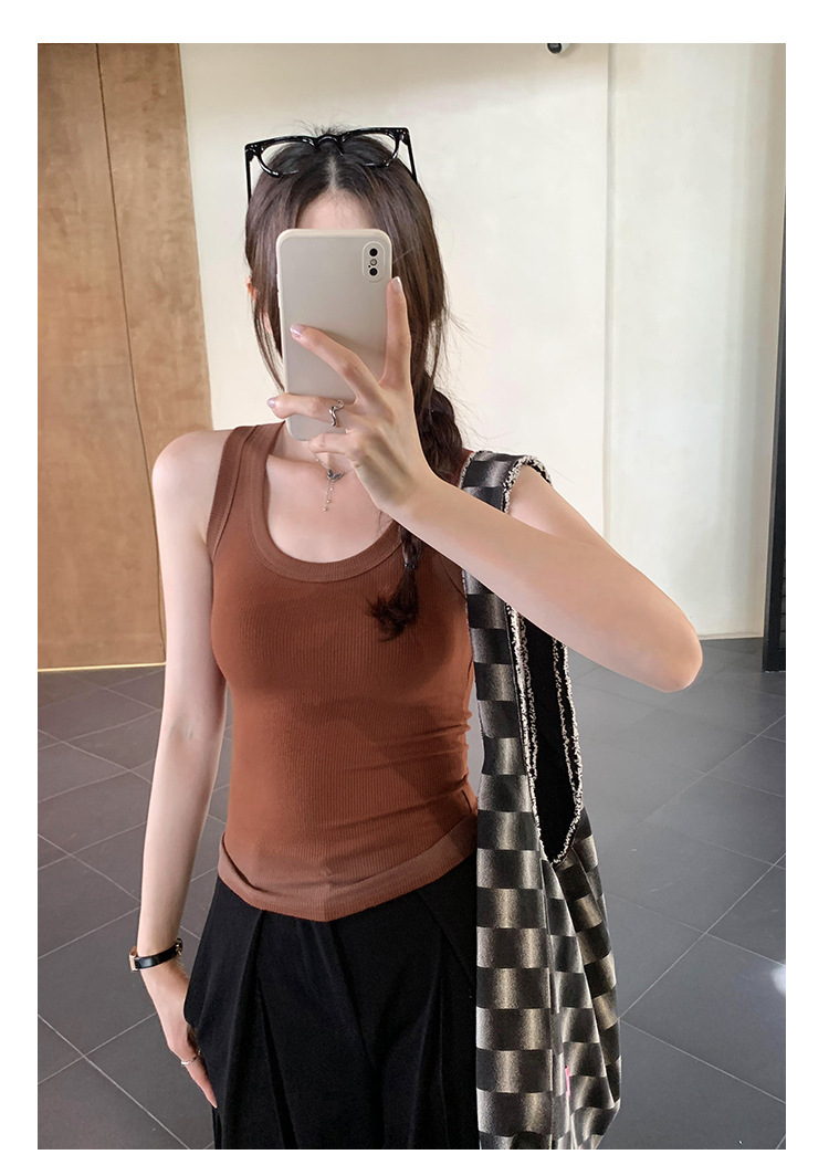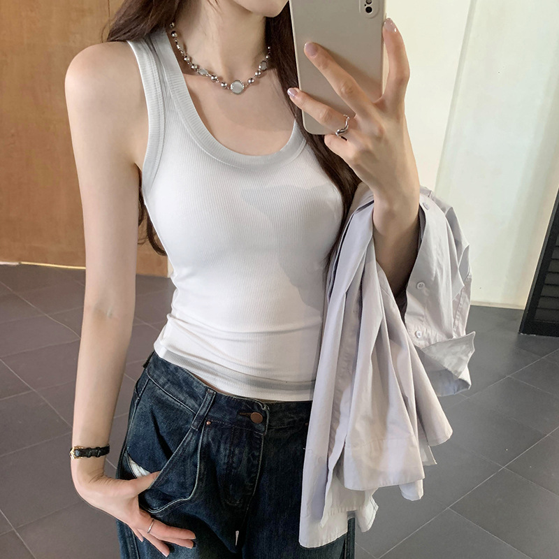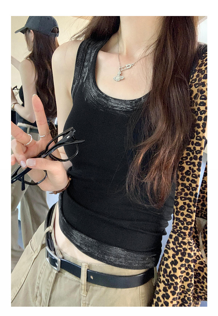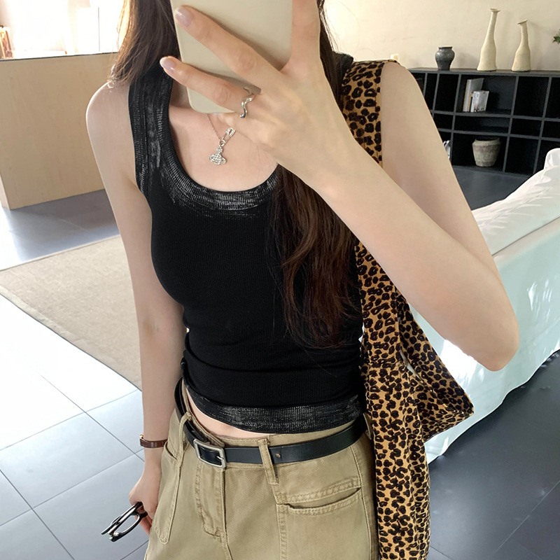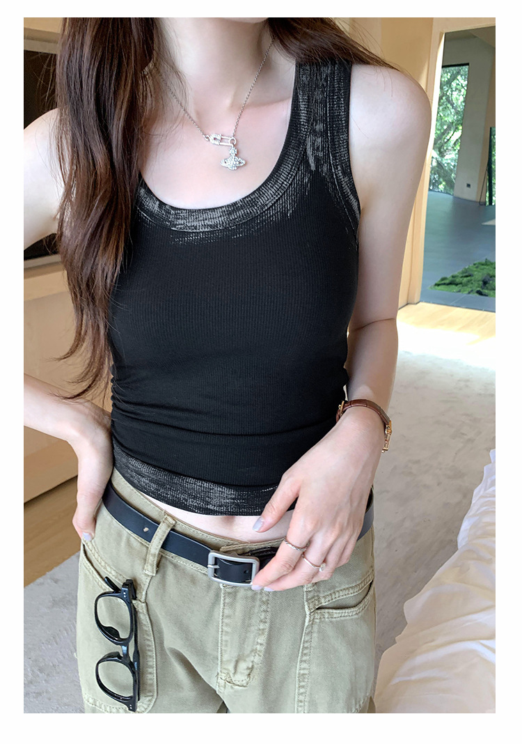 아메리칸 스타일 스파이스 소녀 그라디언트 염료 U-칼라 I-모양의 조끼 여성 여름 2024 새로운 스트레치 민소매 내부 착용 탑스토어 가기