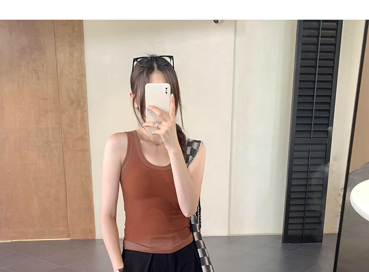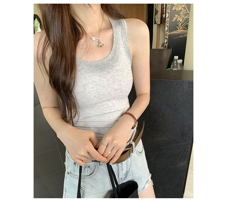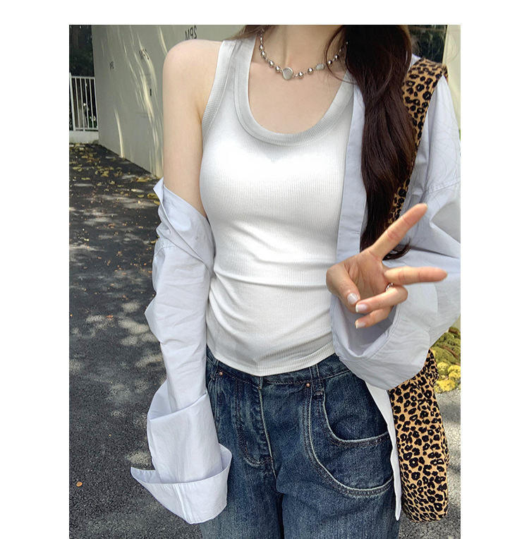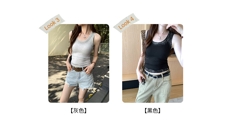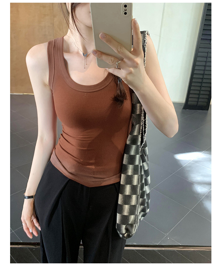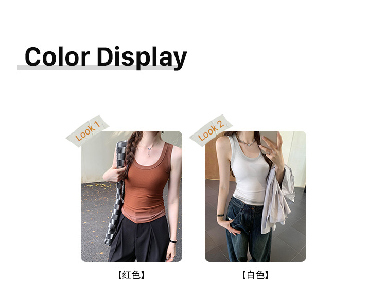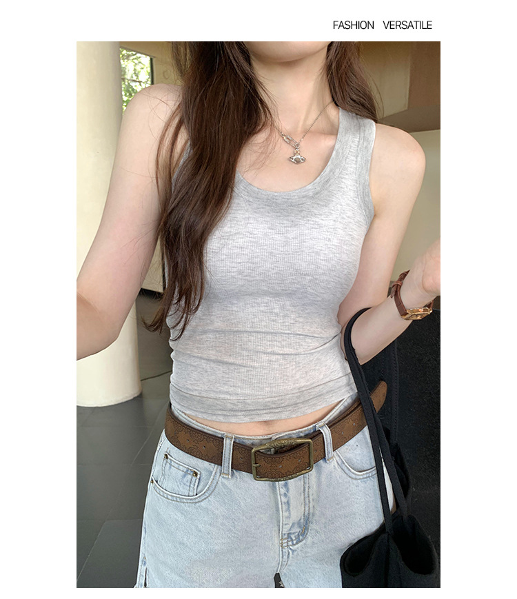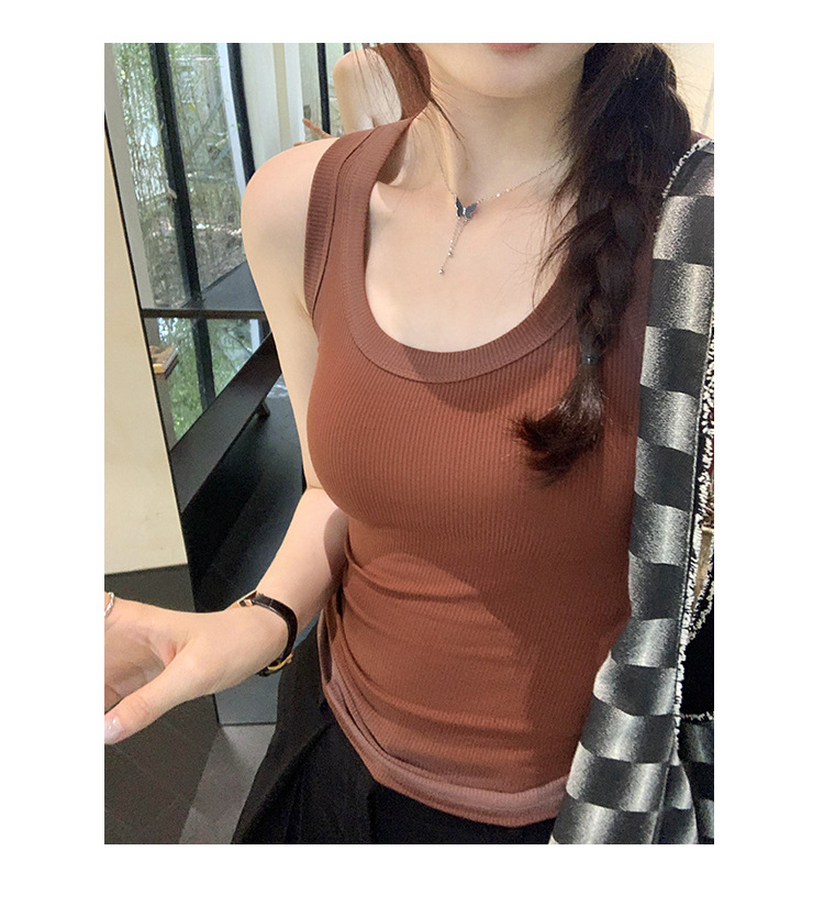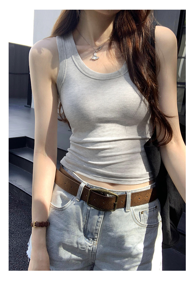 아메리칸 스타일 스파이스 소녀 그라디언트 염료 U-칼라 I-모양의 조끼 여성 여름 2024 새로운 스트레치 민소매 내부 착용 탑스토어 가기