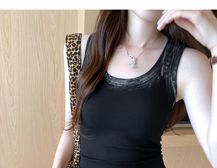 아메리칸 스타일 스파이스 소녀 그라디언트 염료 U-칼라 I-모양의 조끼 여성 여름 2024 새로운 스트레치 민소매 내부 착용 탑