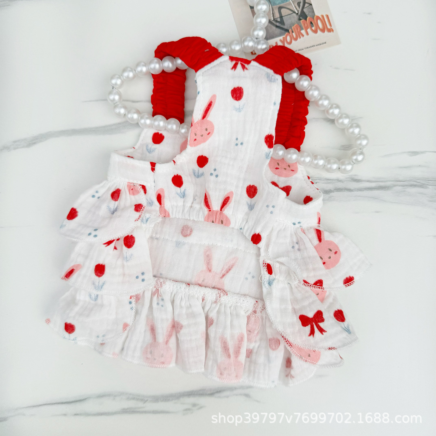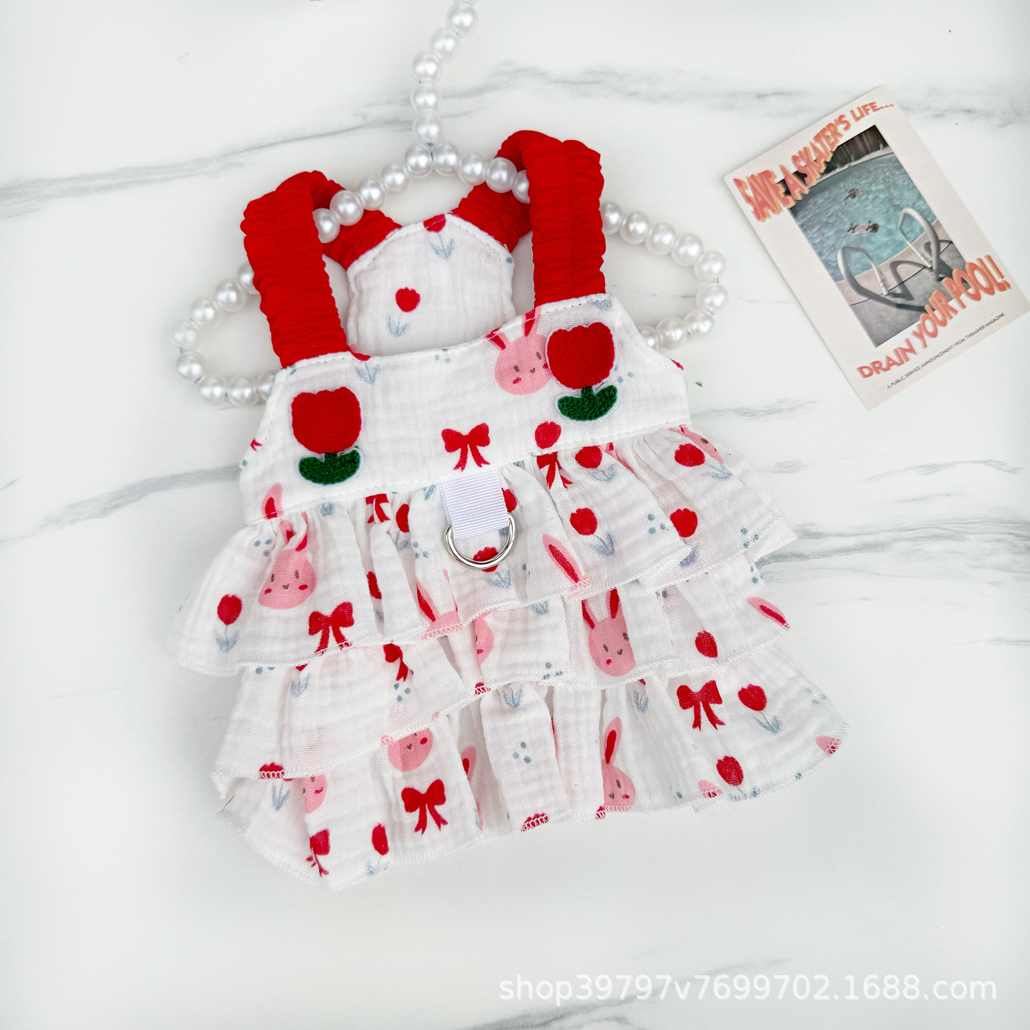 애완 동물 의류 봄과 여름 귀여운 통기성 개 고양이 공주 스타일 스커트 슬링 코튼 테디 비터 베어 머펫스토어 가기