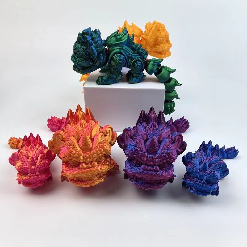 국경 간 재고 3D 인쇄 사자 댄스 조인트는 15cm 그라디언트 데스크탑 자동차 장식 장난감을 이동할 수 있습니다.