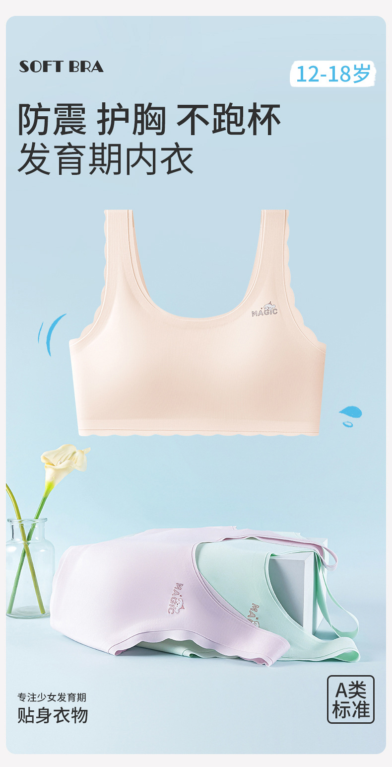 청소년 중학생 고등학생 스포츠 브라 발달기 중학생 브라 조끼 고등학생 고정 컵