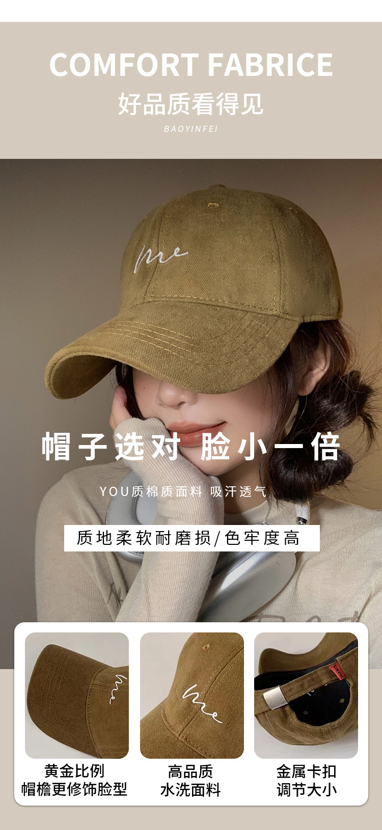 빅 헤드 올 매치 야구 모자 자수 와이드 브림 캡 여자 한국 스타일 쇼페이스 남성용 작은 모자 야외 태양 모자스토어 가기