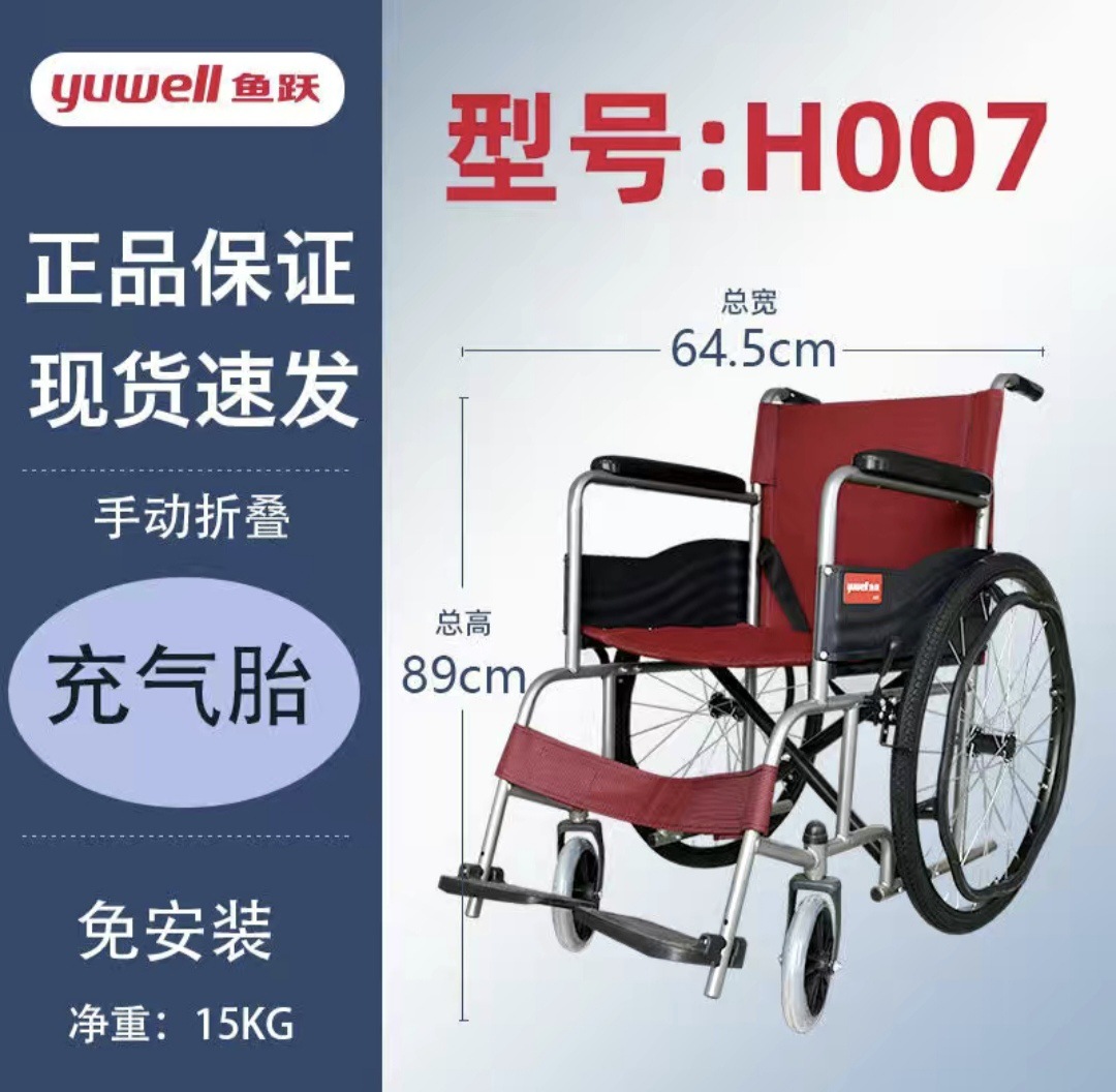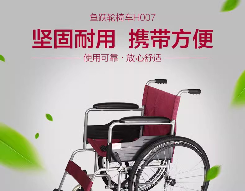 물고기 도약 휠체어 H007 접이식 경량 수동 강관 부드러운 좌석 노인 및 환자 충격 흡수 풍선스토어 가기