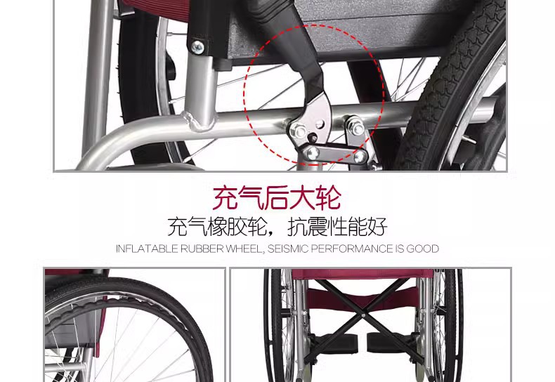 물고기 도약 휠체어 H007 접이식 경량 수동 강관 부드러운 좌석 노인 및 환자 충격 흡수 풍선