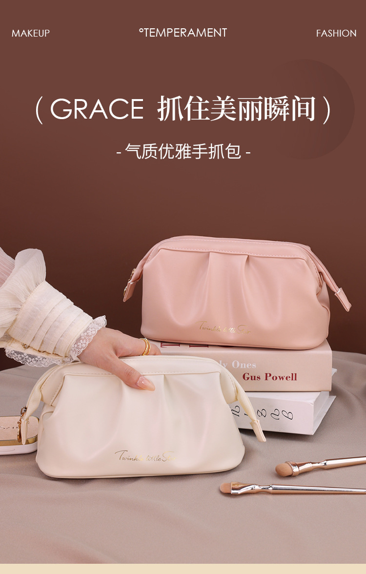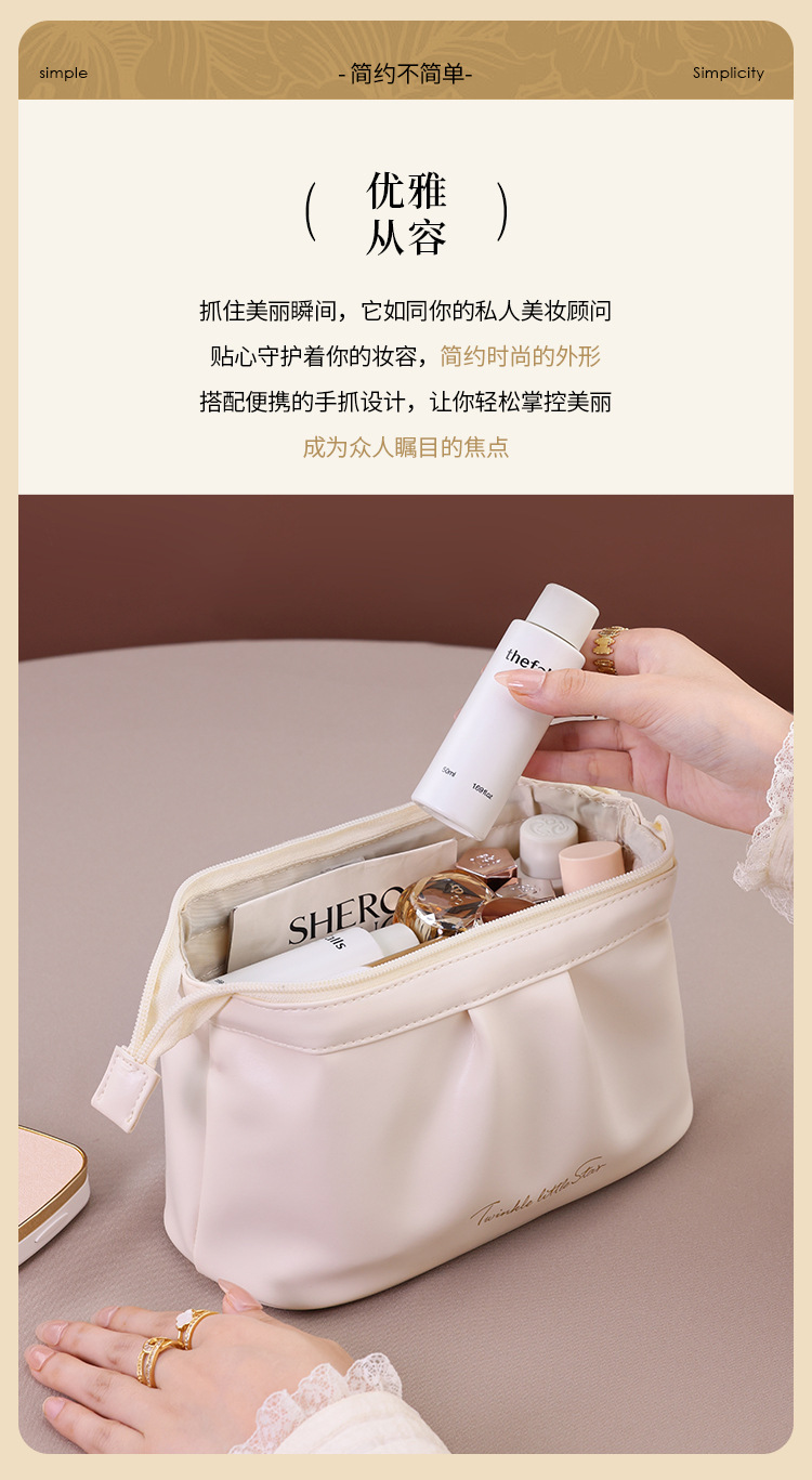 로즈 스토리 PU 방수 화장품 가방 대용량 고급 센스 여행 작은 캐리 온 여성용 휴대용 Ins 스타일 핸드 클러치 백
