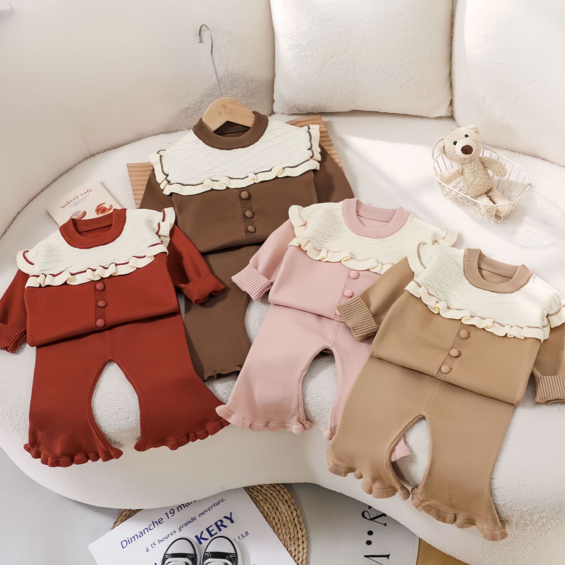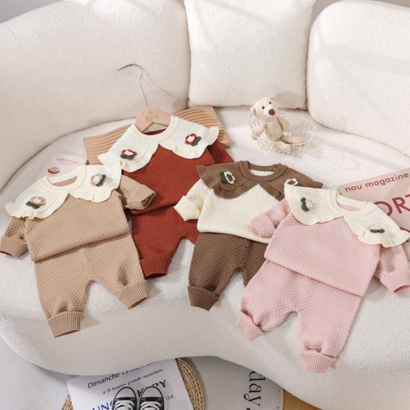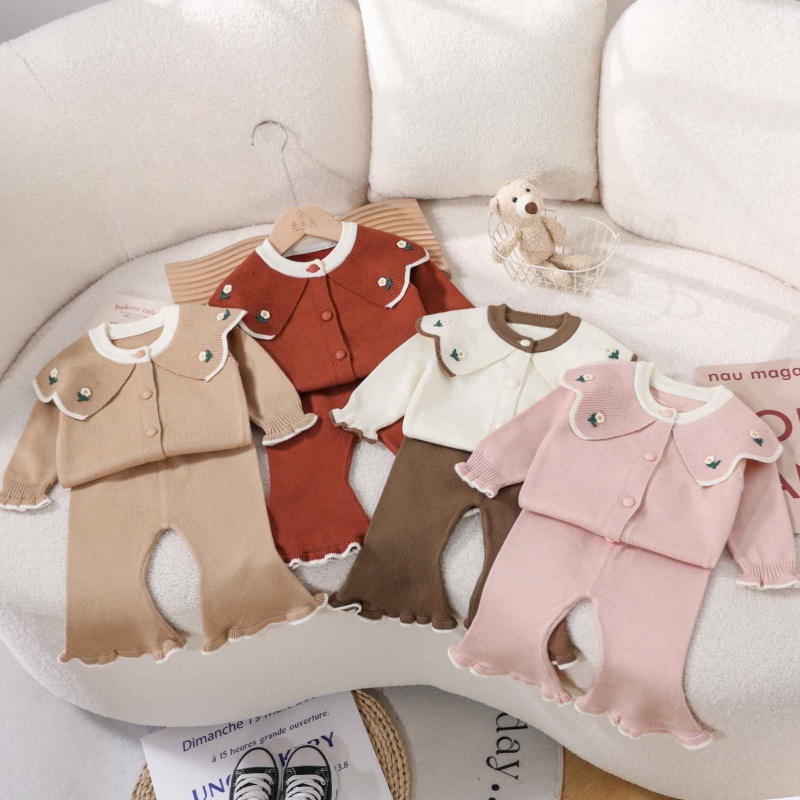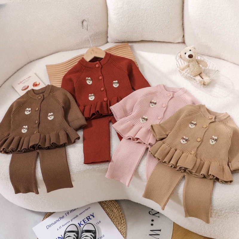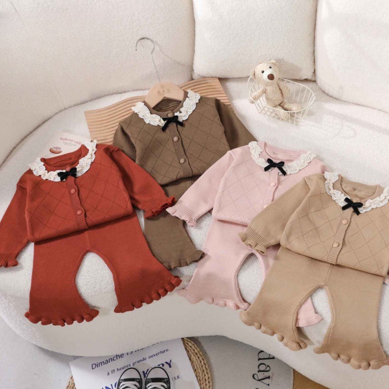 2025 가을 겨울 신상 스웨터 세트 여아용 달콤한 가디건 긴팔 트렌디 패션 바지 투피스 세트 여아용스토어 가기